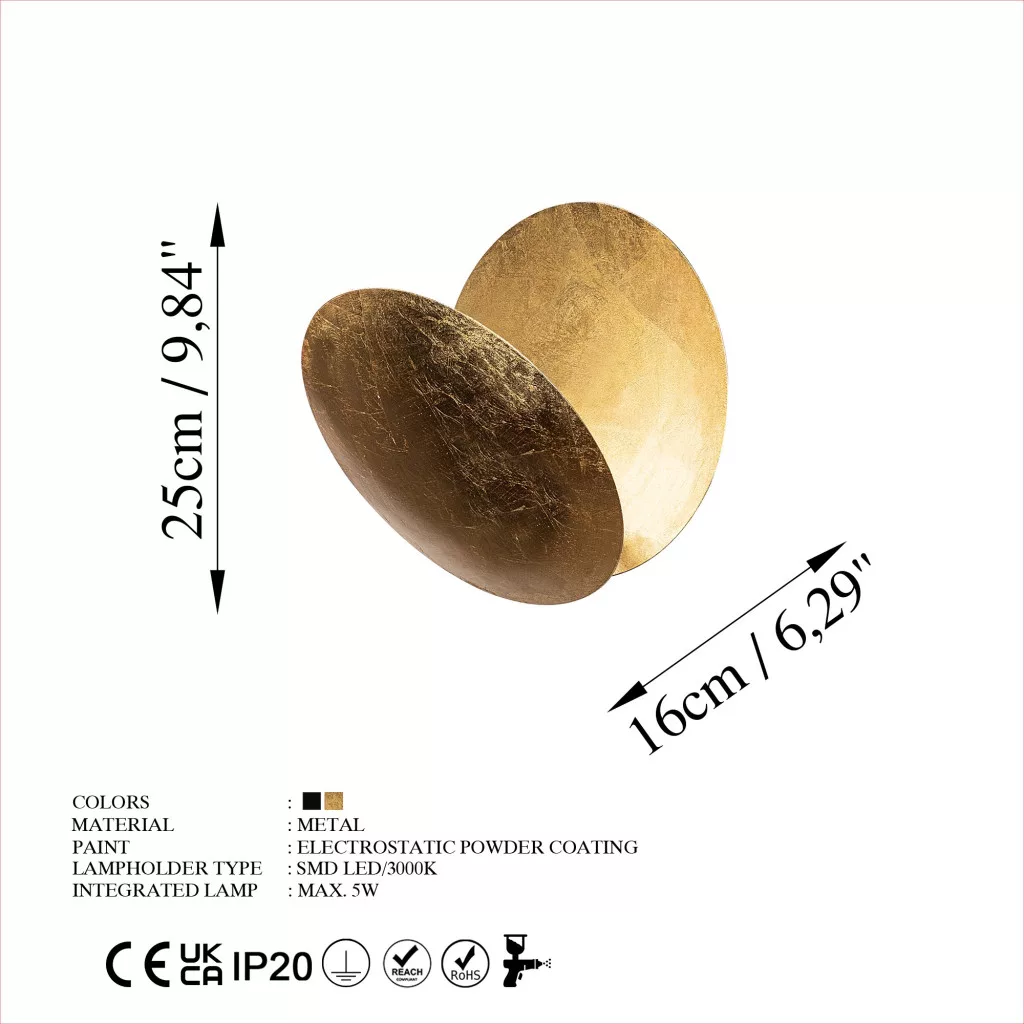 A sapka 25 cm átméroje és 2 cm magassága elegáns és modern dizájnt mutat, míg a 10 cm átméroju és 2 cm magasságú alaplemez egyediséget kölcsönöz. A lámpa magával ragadó arany színe könnyedén feldob bármilyen belso teret, meleg és hívogató hangulatot teremtve.