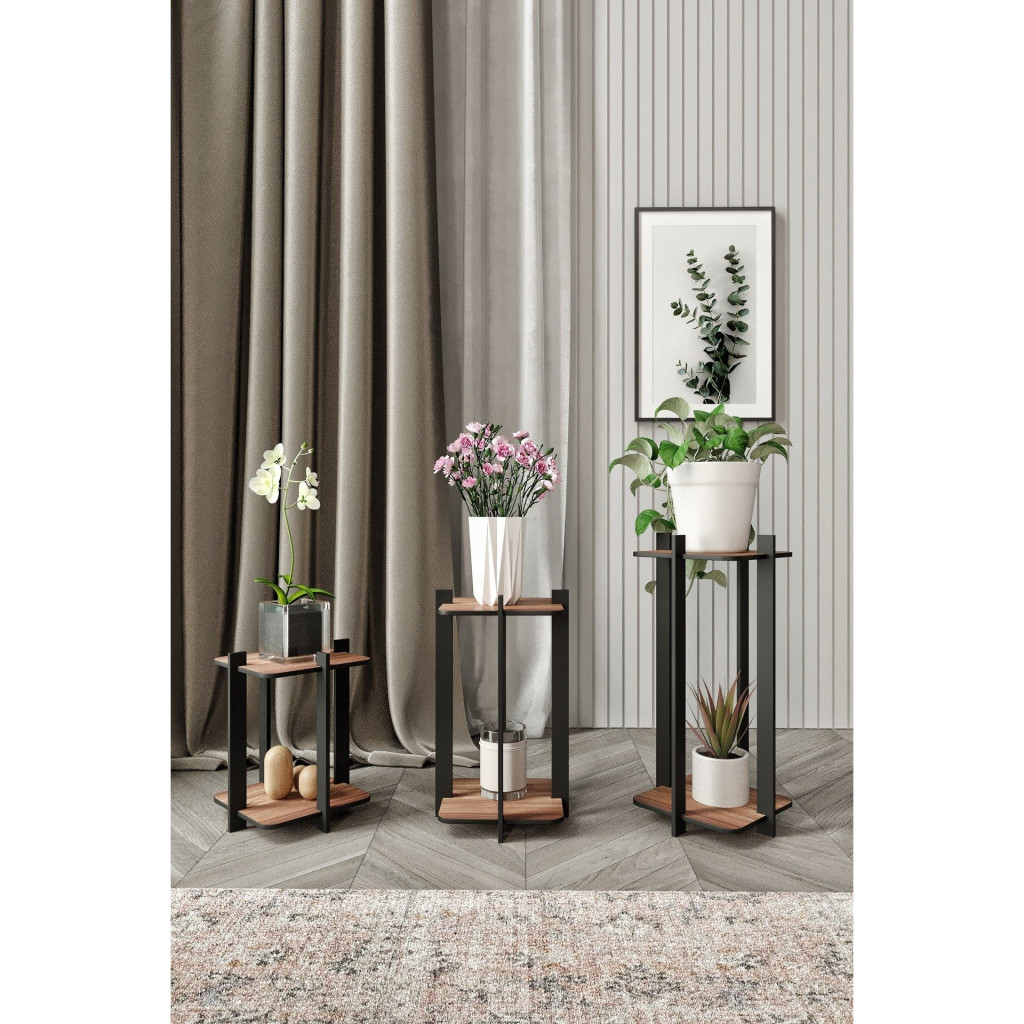 Elegáns kialakításával és diófa színével ez a növényállvány könnyedén illeszkedik bármilyen dekorációs stílushoz. Akár modern, akár hagyományos otthona van, ez az állvány feldobja a tér általános megjelenését.