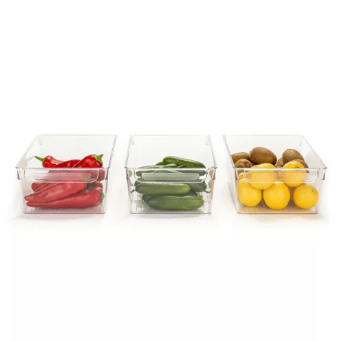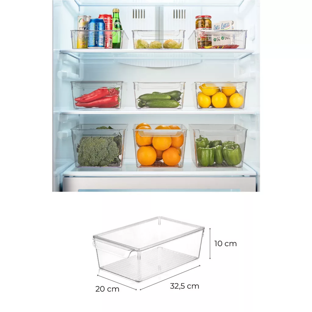 Hűtőszekrény-szervező készletünk elegáns, átlátszó kialakítású, így könnyen láthatja az egyes tárolók tartalmát. Nincs többé találgatás vagy időpocsékolás a megfoghatatlan üveg savanyúság keresésére! az átlátszó szín eleganciát kölcsönöz a hűtőszekrényének, tiszta és rendezett megjelenést kölcsönözve neki.