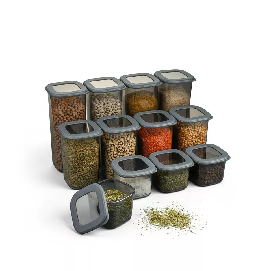 Tárolódoboz készletünk nemcsak funkcionális, hanem esztétikus is. Az antracit szín kifinomultságot kölcsönöz bármelyik konyhának vagy kamrának. Akár minimalista, akár eklektikus stílusa van, tárolódobozaink zökkenőmentesen illeszkednek a dekorációjához.