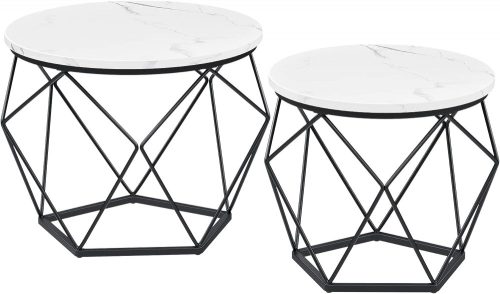 VASAGLE Kerek kávéasztalok, 2 darab mellék asztal, modern stílus, levehető asztallap, acél