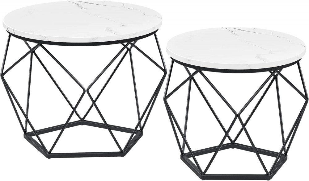 Modern Stílus: Ezek a modern stílusú dohányzóasztalok különleges hangulatot hoznak a nappalijába a kerek fehér tetejükkel és geometrikus fekete acél alapjukkal. Vonzó megjelenésük lenyűgözi vendégeit