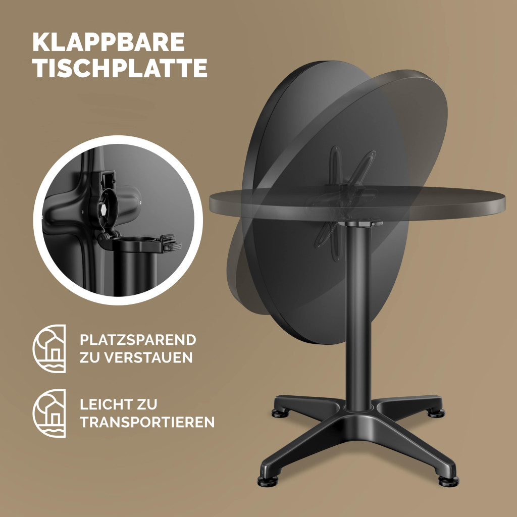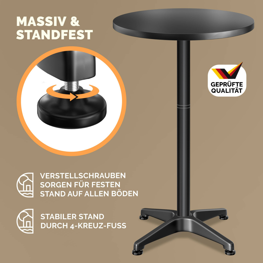2 db állóasztal, összecsukható, alumínium, fekete, 60 cm, 70/115 cm