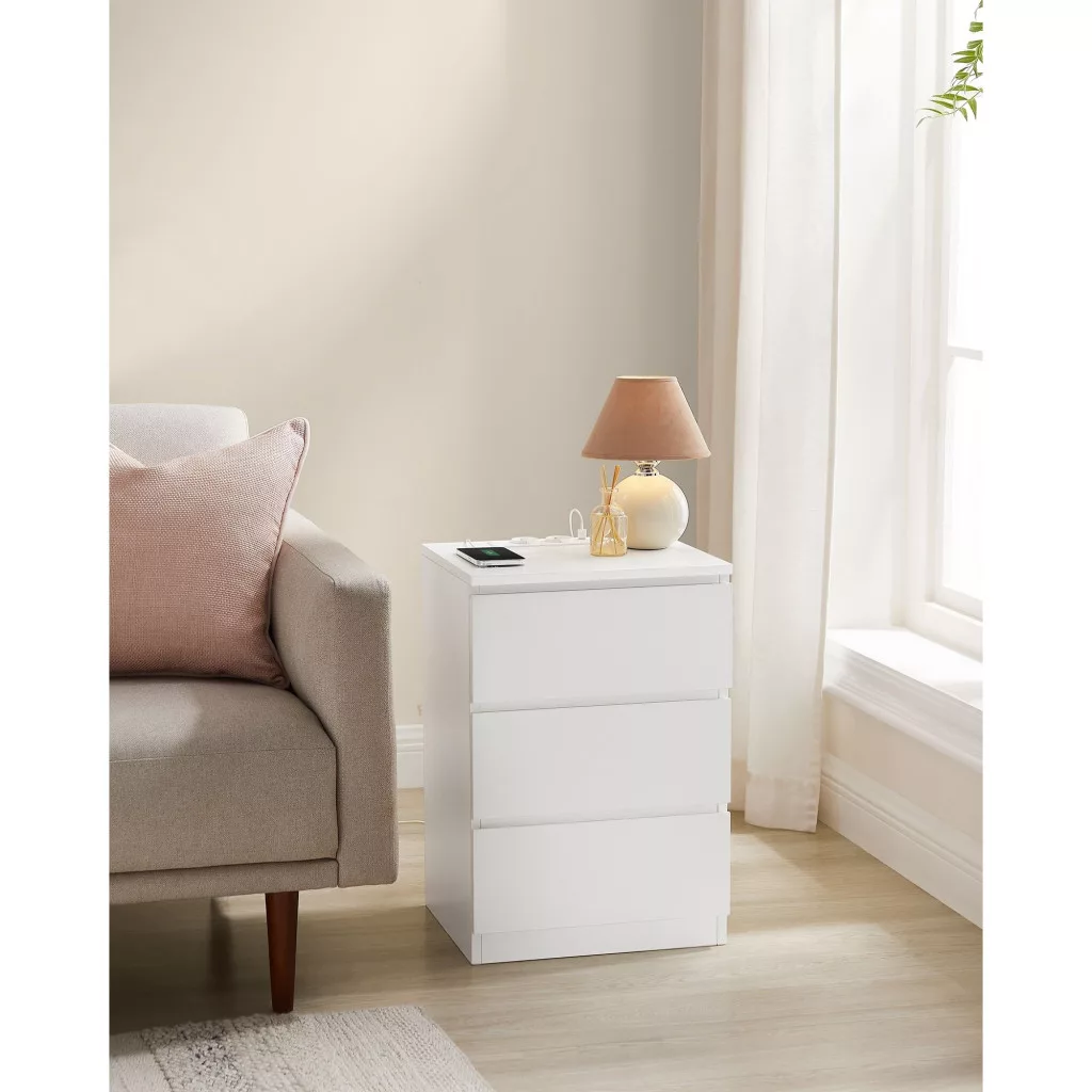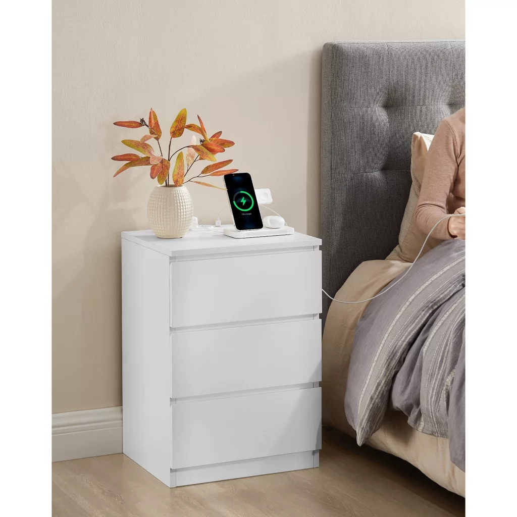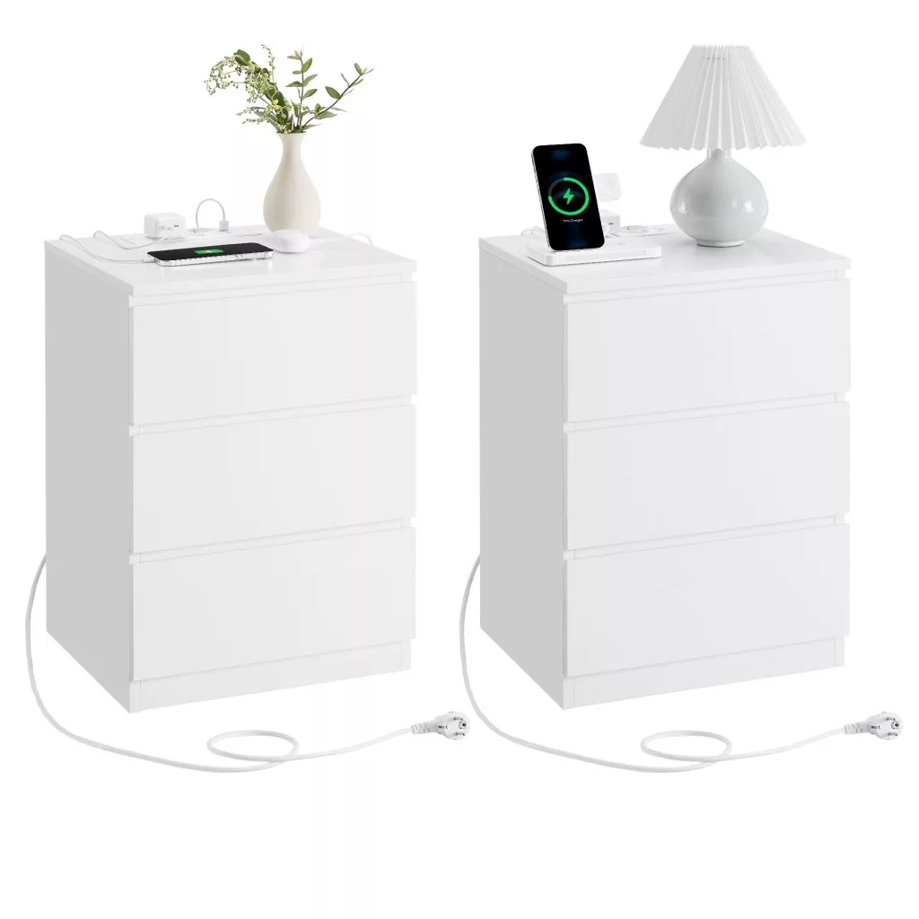 2 db éjjeliszekrény, fiókos, modern, USB aljzattal, fehér 40x30x50cm