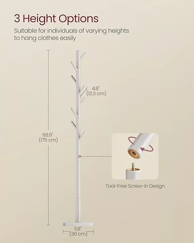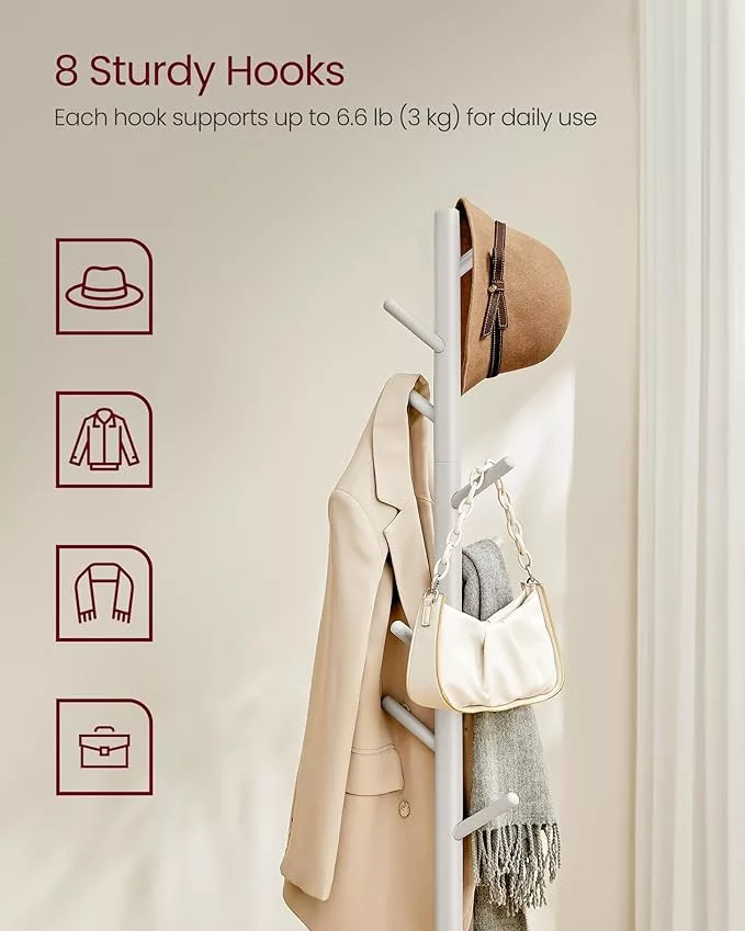 • Könnyű összeszerelés: Az álló ruhafogas beépített menetes részekkel rendelkezik, így nincs szükség külön szerszámokra az összeszereléshez. Csak kövesse az egyszerű utasításokat, és már kész is!