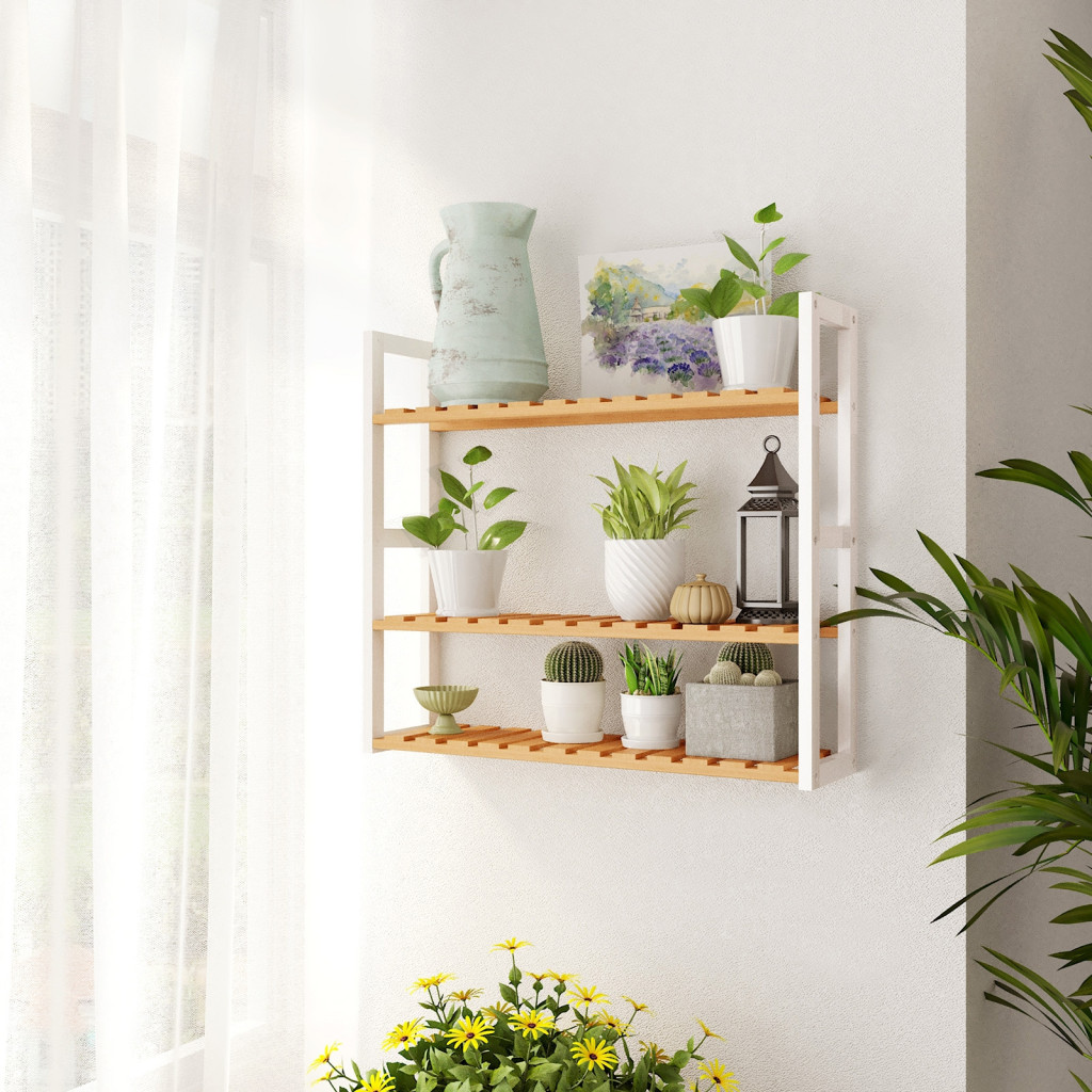 Bambusz fürdőszobai polc, 3 szintes állítható növénytartó, falra szerelhető,