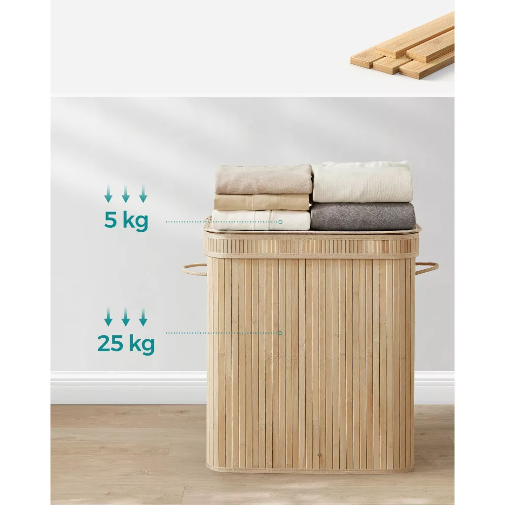 A bambusz szennyestartó fedéllel egy praktikus és stílusos megoldás a háztartás számára. Az alábbi előnyöket kínálja a vásárlók számára:
