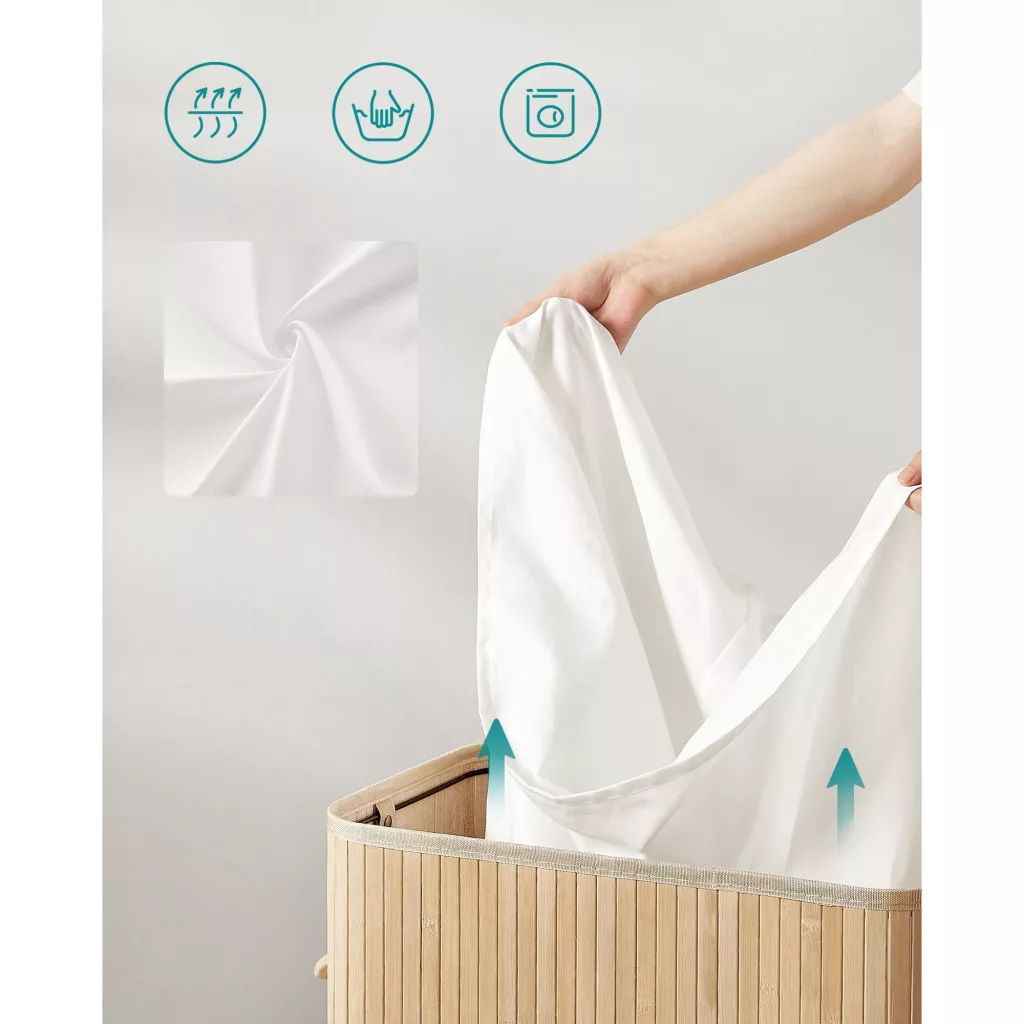 Bambusz szennyestartó fedéllel, kivehető mosható zsákkal, 100L, natúr bézs