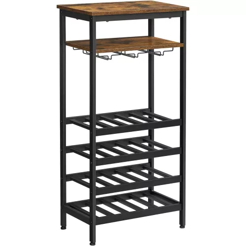 VASAGLE Bortartó polc 20 borosüvegnek, pohártartóval, rusztikus barna és fekete 50 x 32 x 100 cm