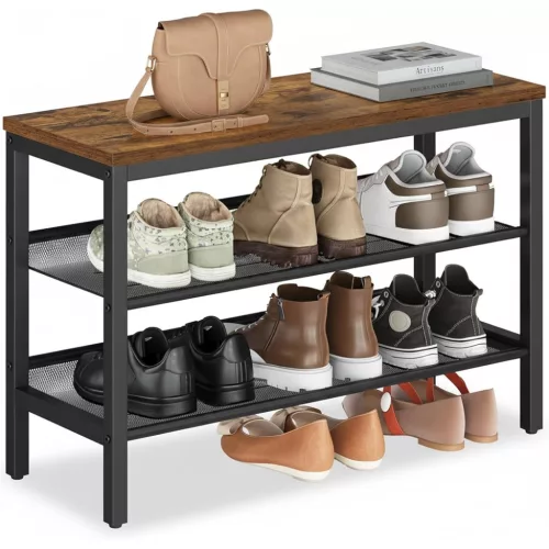Cipőtároló pad, három szintes, rusztikus barna és matt fekete