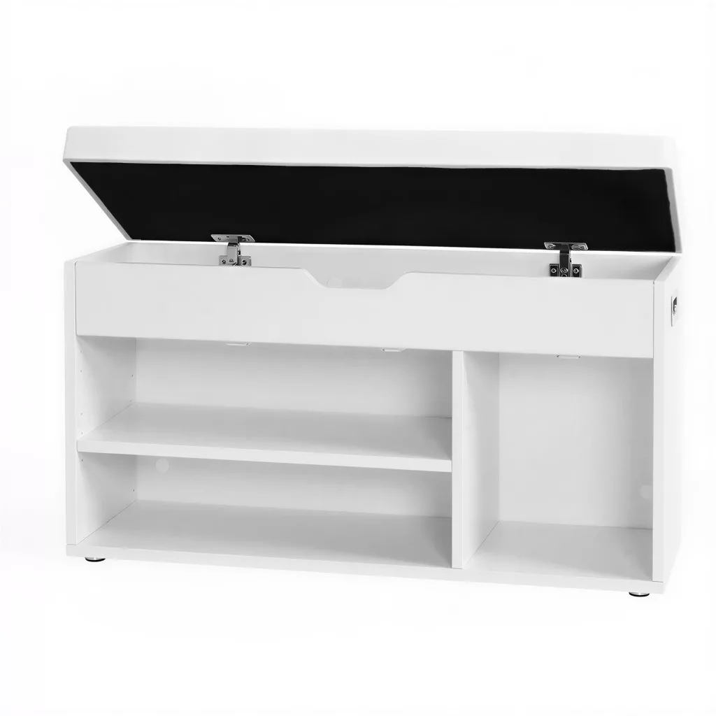 Cipőtároló pad, párnázott ülőfelülettel, 3 rekesszel, fehér 100x30x44cm