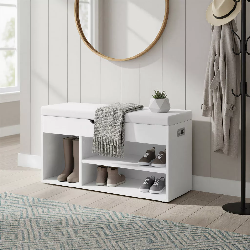 • Kényelmes ülőfelület: A párnázott ülőfelület lehetővé teszi, hogy kényelmesen üljön, miközben cipőt húz, vagy csak pihen egy kicsit.