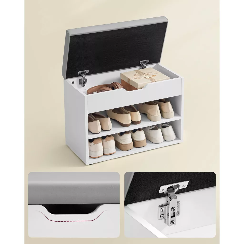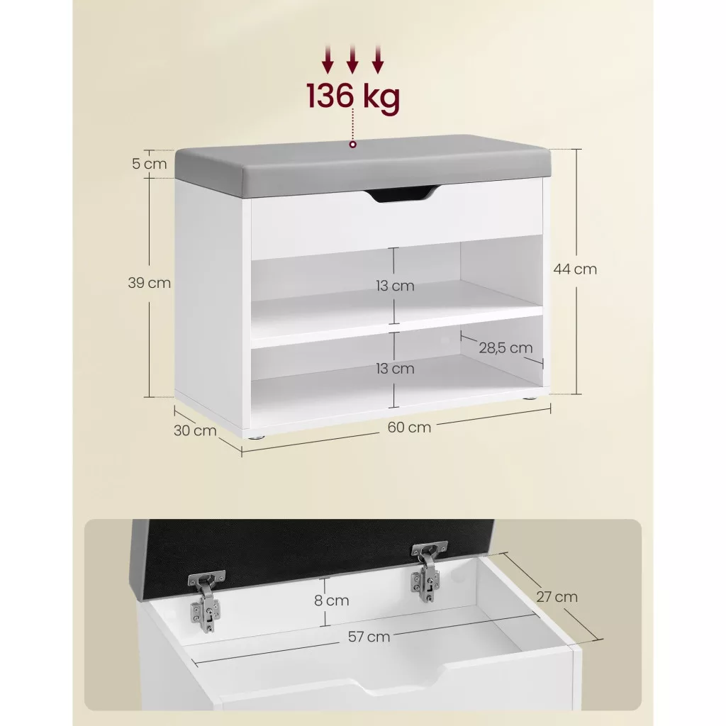 Ez a Cipőtároló pad, párnázott ülőfelülettel, három szinttel, felnyitható, felhő tökéletes megoldás a rend és a kényelem megteremtésére otthonában. Az alábbi előnyöket kínálja: