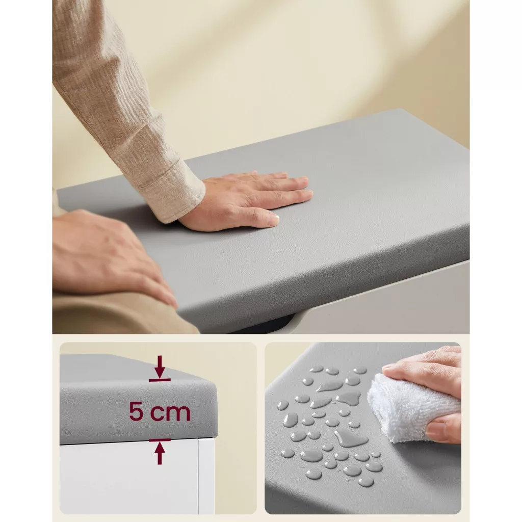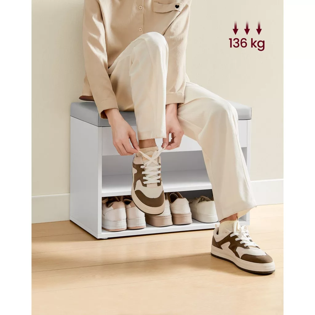 • Kényelmes ülőfelület: A 4 cm vastag, párnázott ülőpárna kényelmes élményt nyújt a cipő felvételénél vagy levételénél.