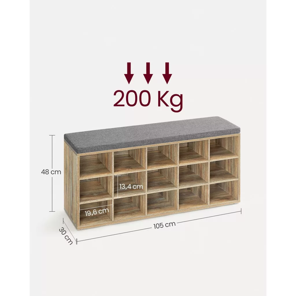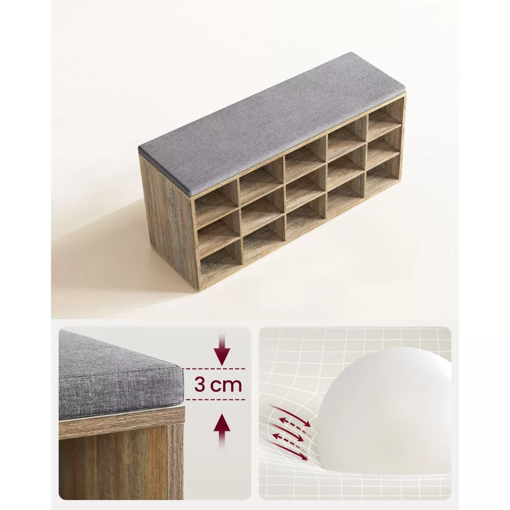 Ez a cipőtároló pad tökéletes megoldás a rend és a kényelem egyesítésére otthonában. A 15 nyitott tárolórekesz lehetővé teszi, hogy cipőit rendezetten tárolja, miközben a kényelmes ülőfelület biztosítja a pihenést. Az alábbi előnyöket élvezheti, ha ezt a terméket választja: