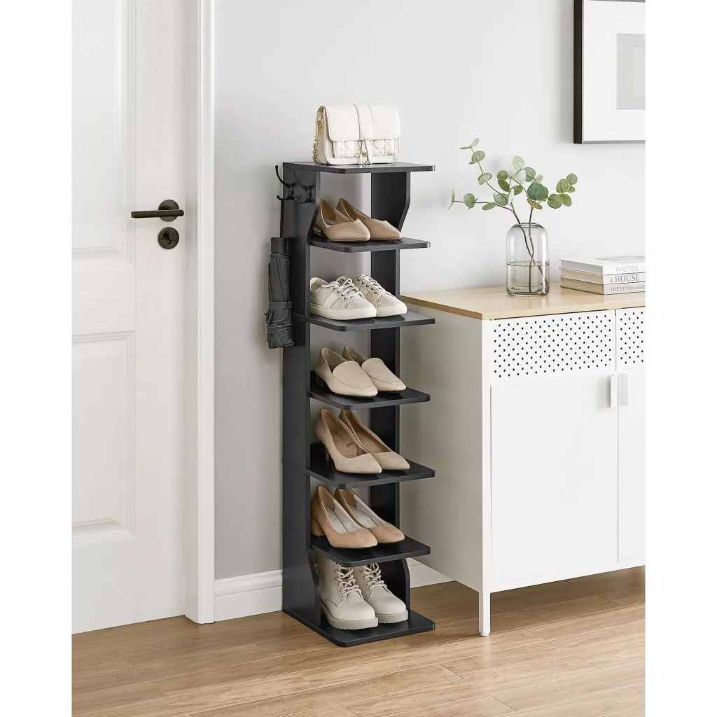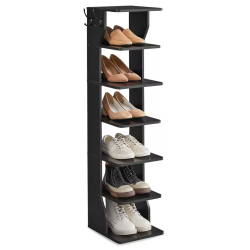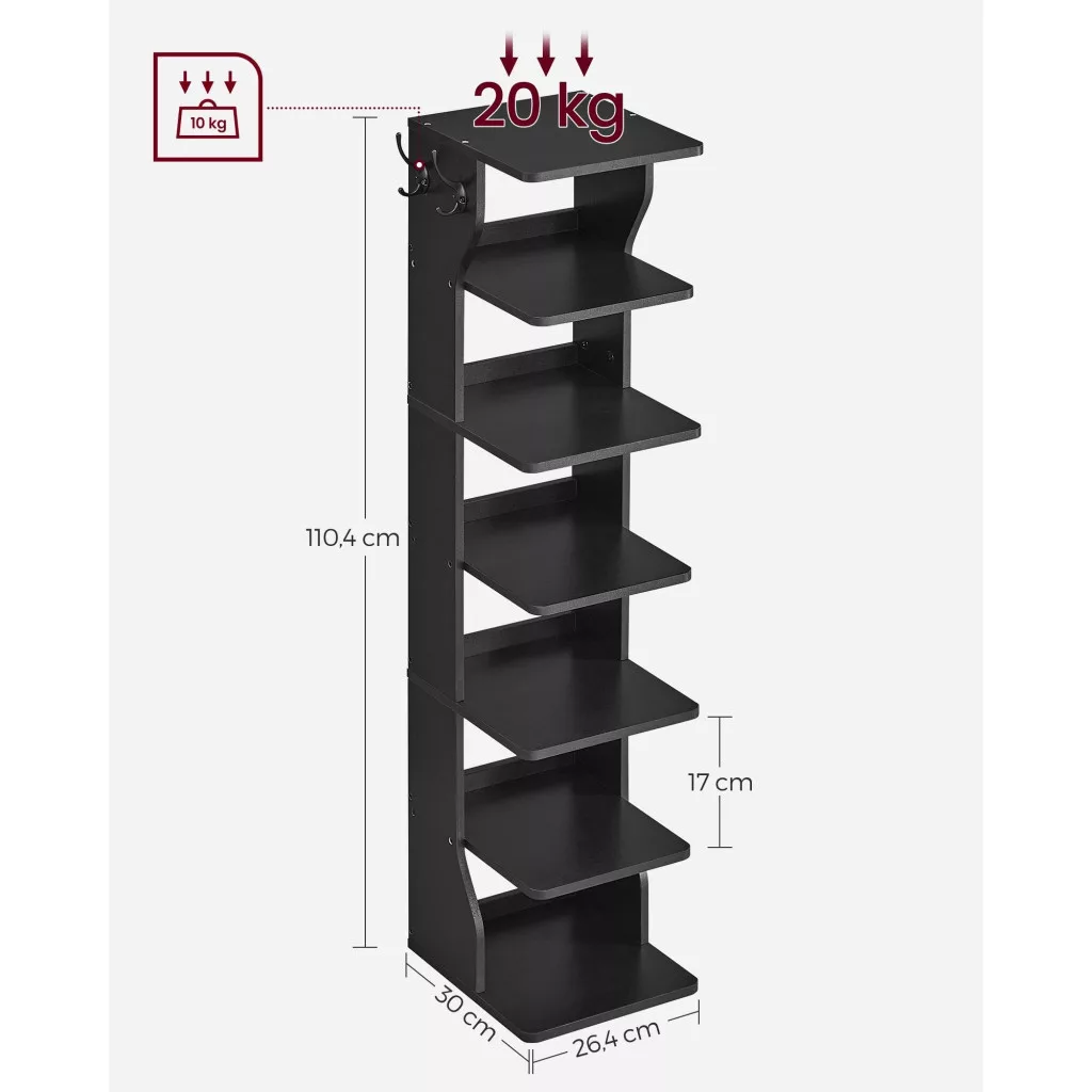 Cipőtároló polc, keskeny, 6 szintes, kis helyre, fekete 60x24x180cm