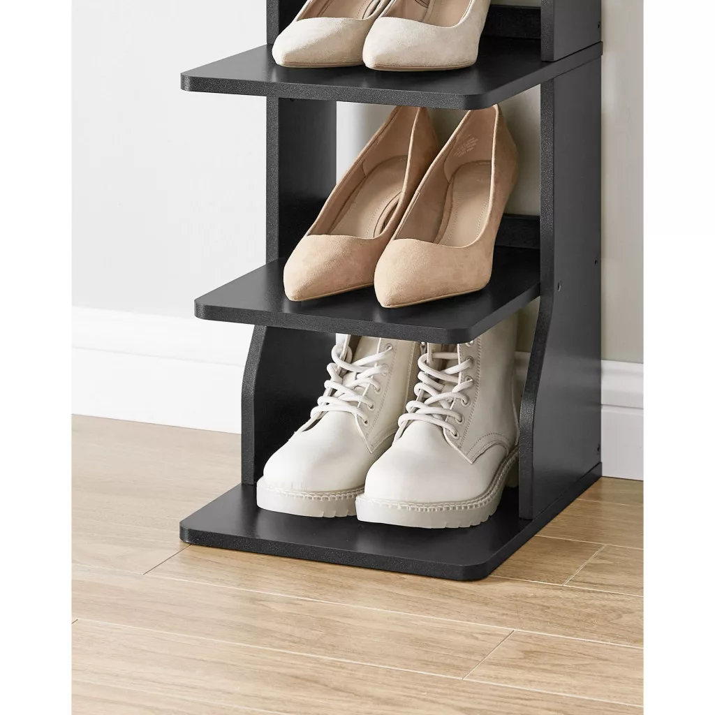 A keskeny cipőtároló polc ideális megoldás a kis helyiségek számára, ahol a tér kihasználása kulcsfontosságú. Ezzel a 6 szintes tárolóval könnyedén rendszerezheti cipőit, miközben stílusos megjelenést biztosít otthonának. A fekete szín eleganciát kölcsönöz, így bármilyen belső térbe könnyen illeszkedik.