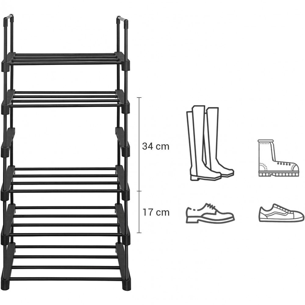 SONGMICS 6 szintes cipőtartó, vas cipőtároló szervező, testreszabható design, helytakarékos