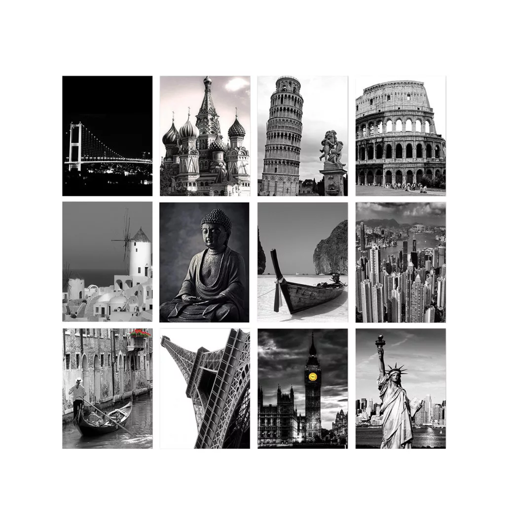 Dekoratív MDF festmény, 12 darab, fekete-fehér