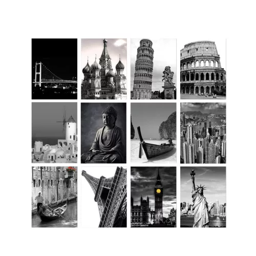 Alakítsa át életterét ezzel a lenyűgöző, 12 darabos, dekoratív mdf festményből álló készlettel. Minden egyes darabot gondosan, 100% mdf-ből készítenek, így biztosítva a tartósságot és a hosszú élettartamot. A 3 mm-es vastagság eleganciát és kifinomultságot kölcsönöz ezeknek a gyönyörű műalkotásoknak.