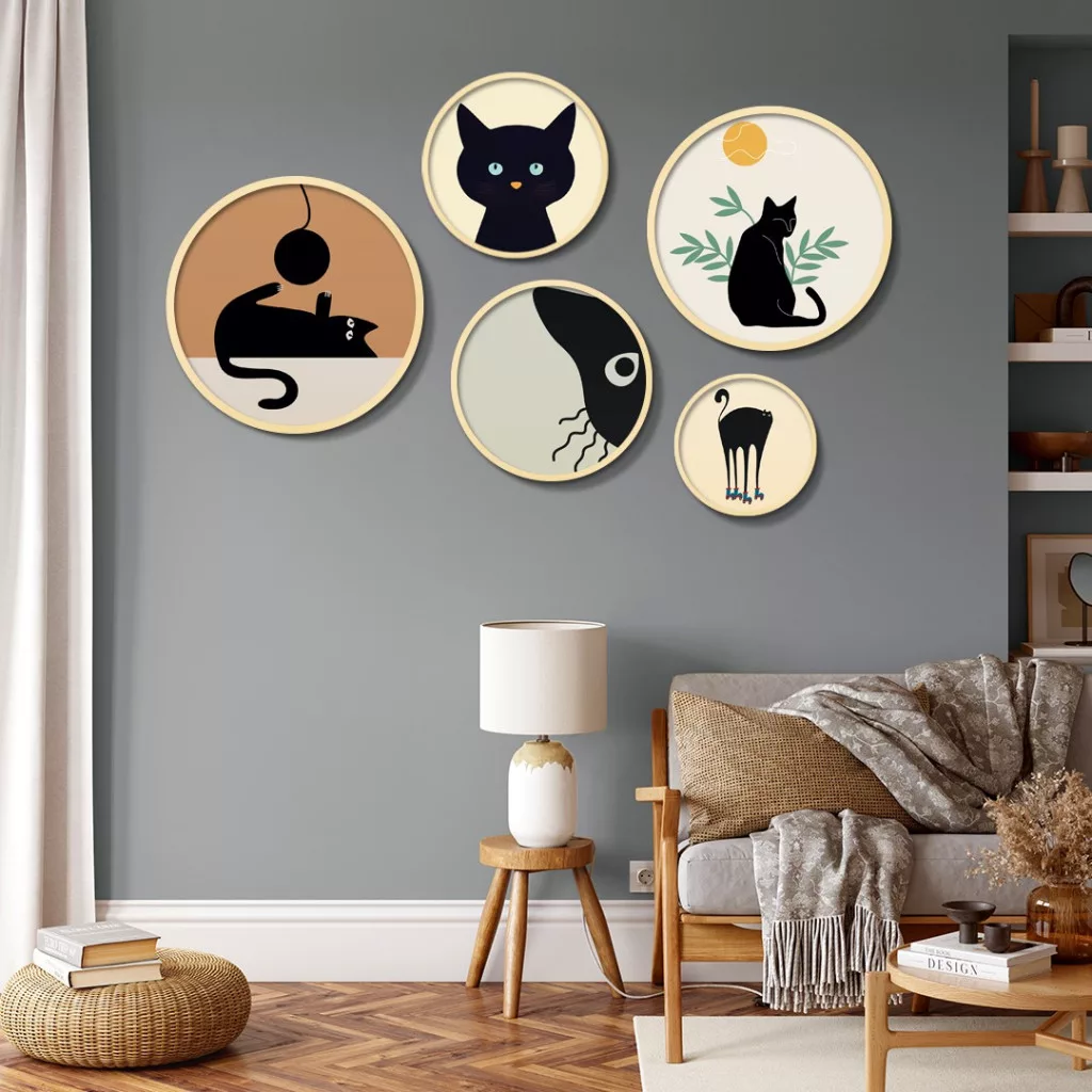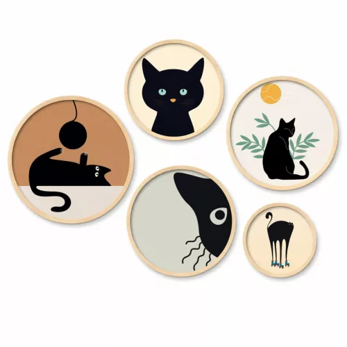 Dekoratív kerek MDF Festmény, 5 Darab, cicák
