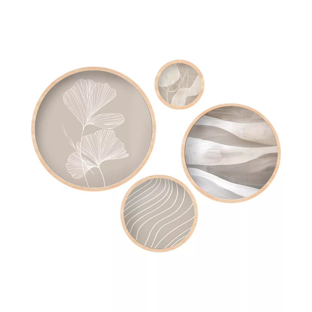 Dekoratív kerek MDF festmény, 4 darab, bézs