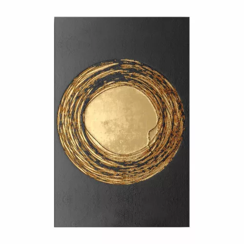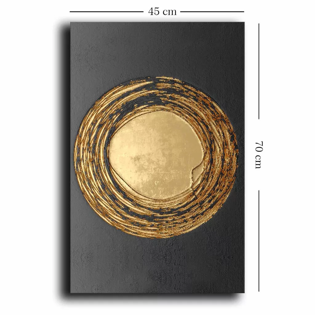 Bemutatjuk a gyönyörű dekoratív vászonfestményt, amelynek célja a luxus és a stílus hozzáadása bármely helyiséghez. Az arany és a fekete színek magával ragadó keverékével ez a remekmű minden bizonnyal érzelmek széles skáláját idézi elő, és egy elbűvölő fókuszpontot hoz létre a térben.