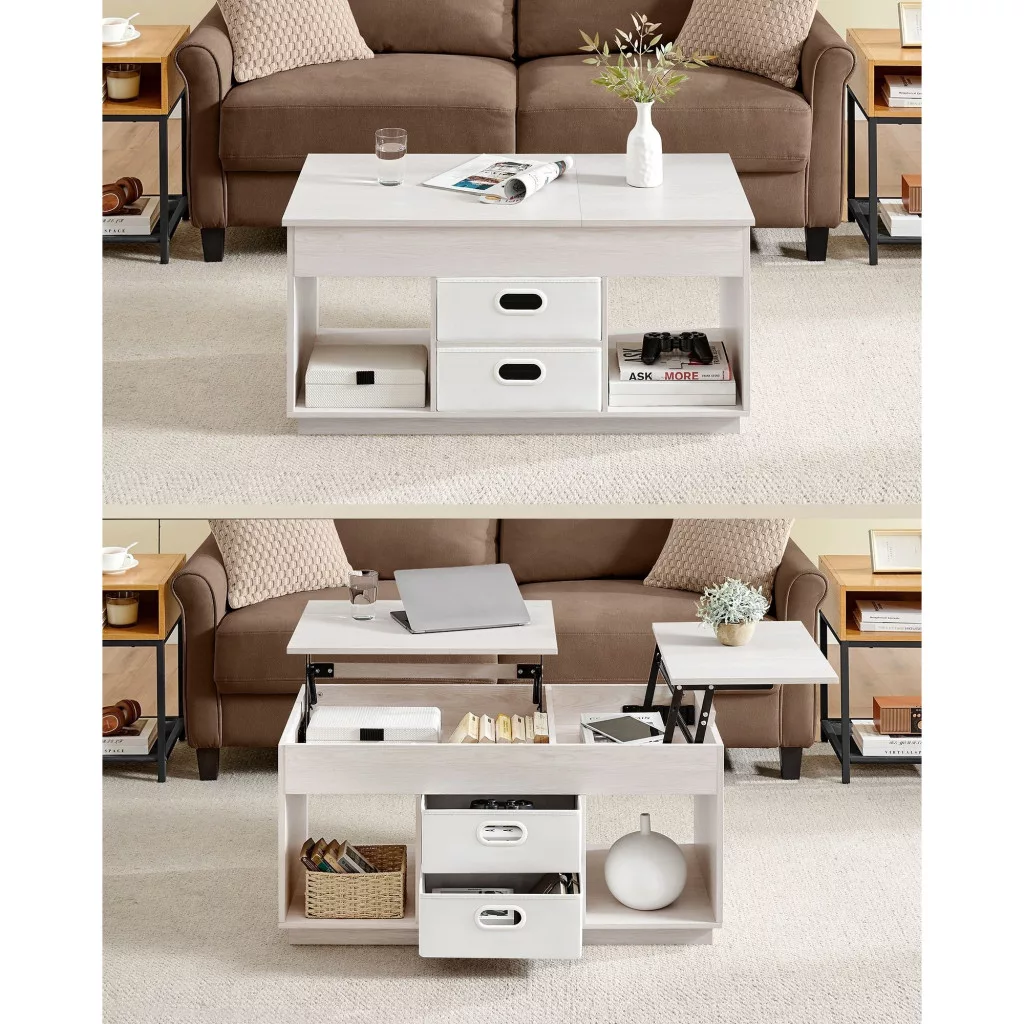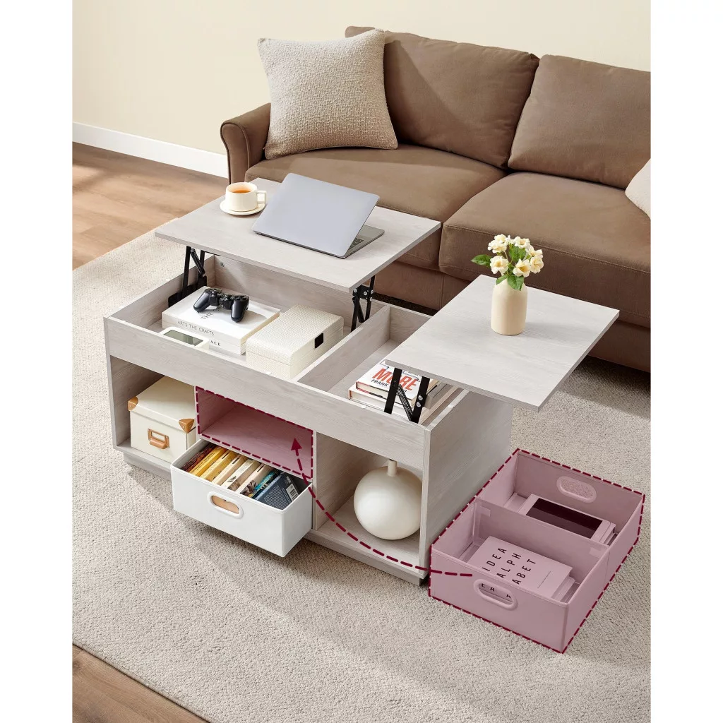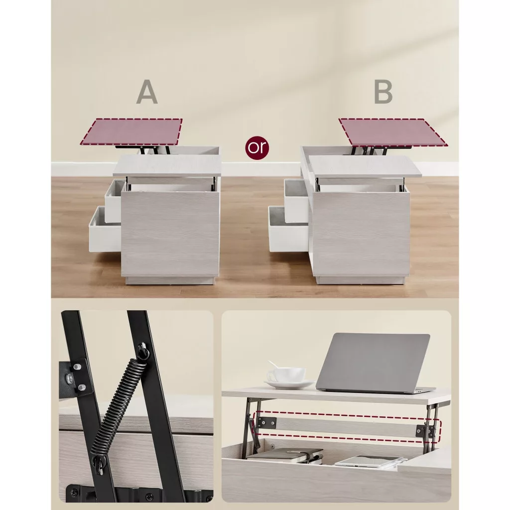 • Rugalmas emelhető asztallap: Az asztallap két irányban emelhető, így könnyen hozzáférhet a tárolt tárgyakhoz, legyen szó könyvekről vagy távirányítókról.