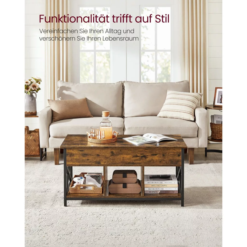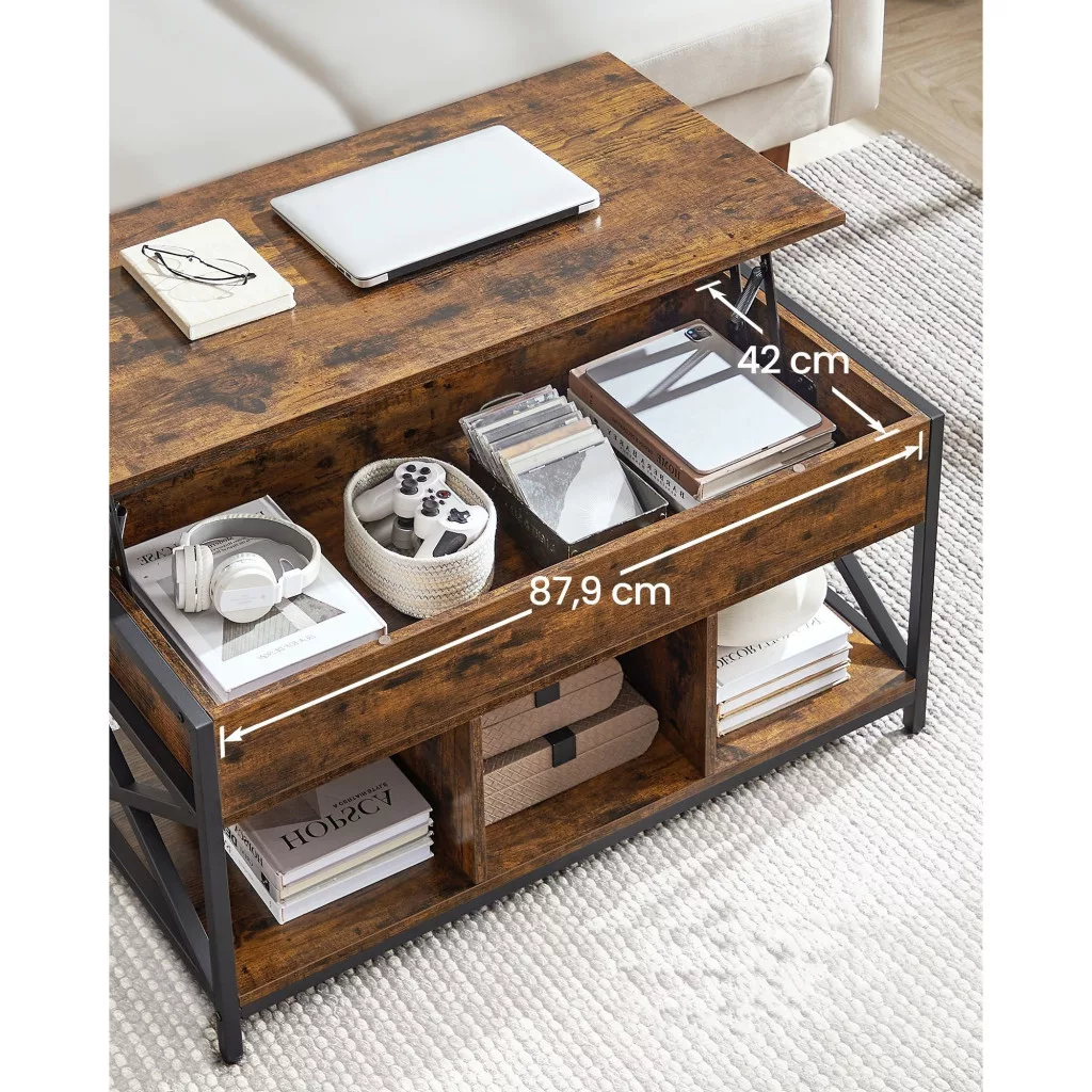 Ez a dohányzóasztal nemcsak funkcionális, hanem stílusos is, tökéletes választás a modern otthonokba. Az emelhető asztallap lehetővé teszi, hogy a kanapén ülve kényelmesen dolgozzon, étkezzen, vagy akár játékokat játsszon. A rusztikus barna és fekete színkombináció eleganciát és melegséget visz a nappaliba.
