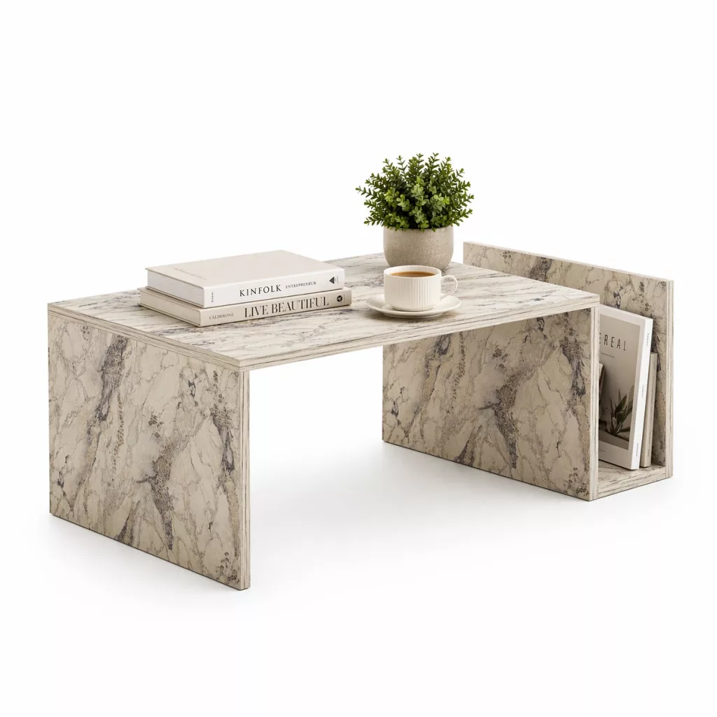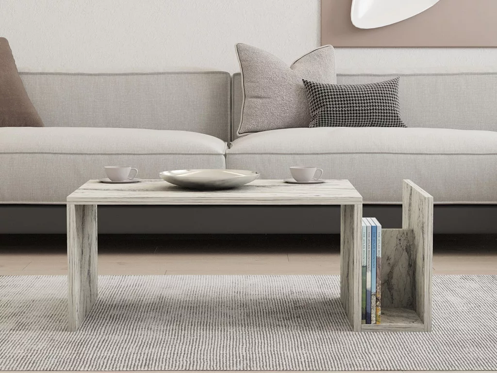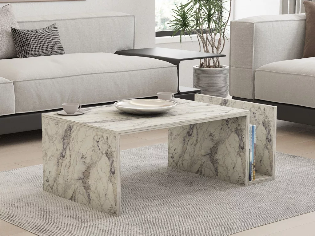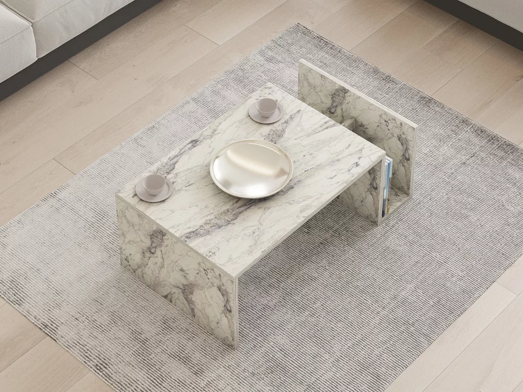 Alakítsa át életterét lenyűgöző márvány márvány dohányzóasztalunkkal. Ez az elegáns darab nem csupán egy asztal, hanem a stílus és a kifinomultság kifejezője. A 100% melaminbevonatú forgácslap biztosítja a tartósságot és a hosszú élettartamot, így évekig élvezheti ezt a gyönyörű darabot.