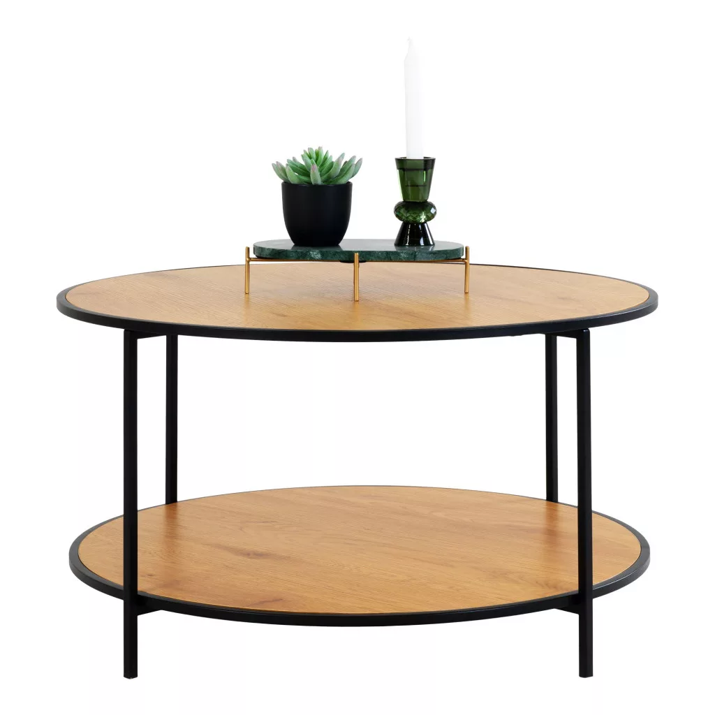 Dohányzóasztal, tölgyfa hatású, fekete keret, 80 x 80 x 45 cm