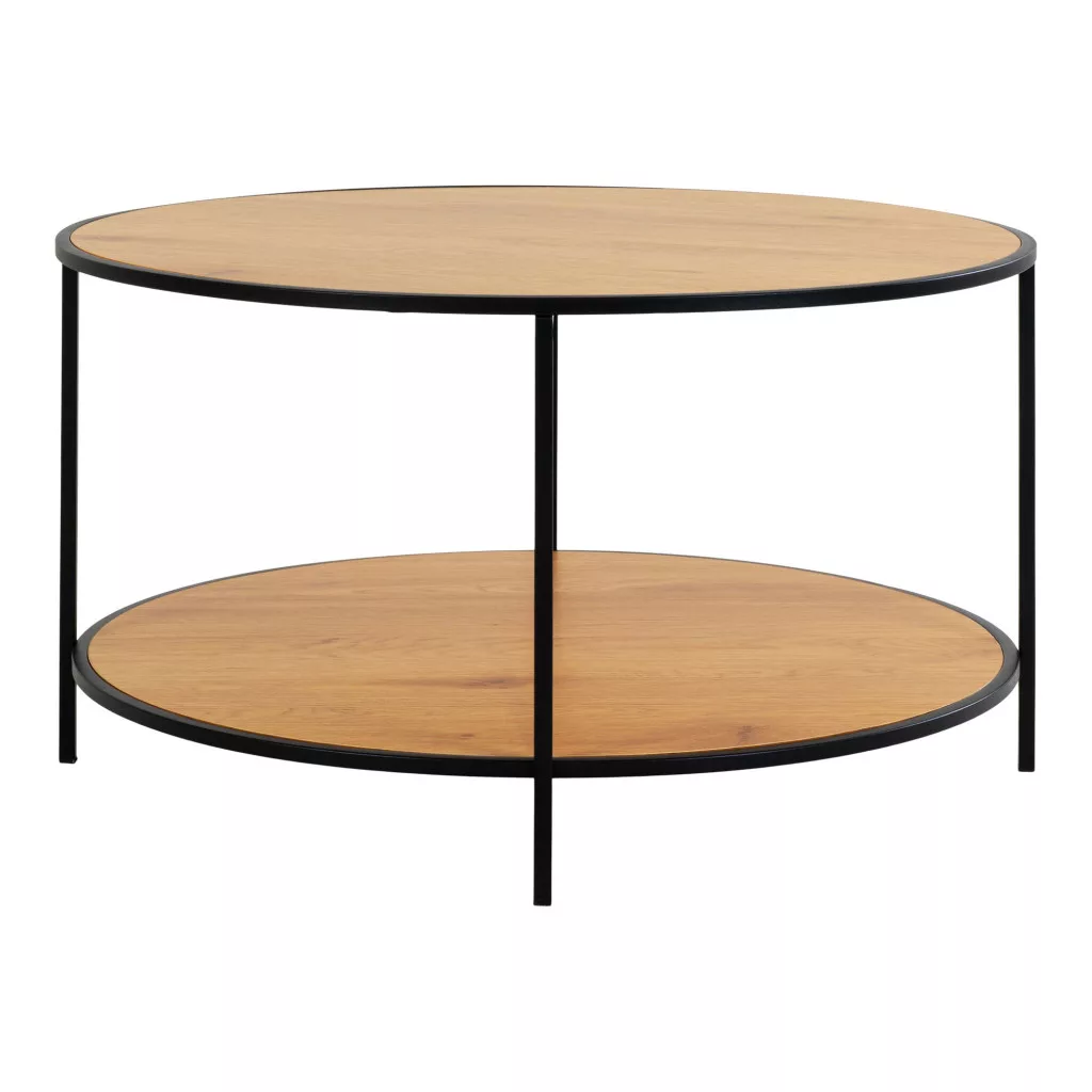 Ez a stílusos dohányzóasztal tökéletes kiegészítője lehet bármely modern nappalinak. A tölgyfa hatású felület és a fekete keret elegáns megjelenést kölcsönöz, amely bármilyen belső térbe könnyedén illeszkedik. Az asztal mérete ideális, hiszen 80 x 80 x 45 cm-es dimenzióival tökéletes helyet biztosít italok, könyvek vagy dekorációk számára.