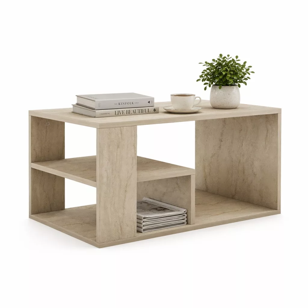 Alakítsa át életterét lenyűgöző travertin dohányzóasztalunkkal. A 100% melaminbevonatú forgácslapból készült dohányzóasztal nemcsak tartós, hanem hihetetlenül elegáns is.