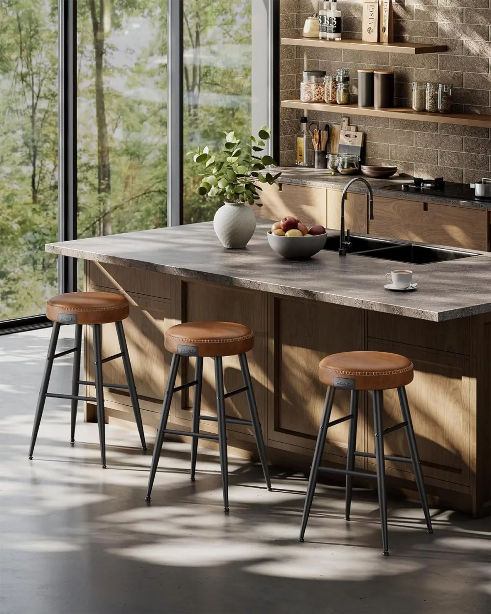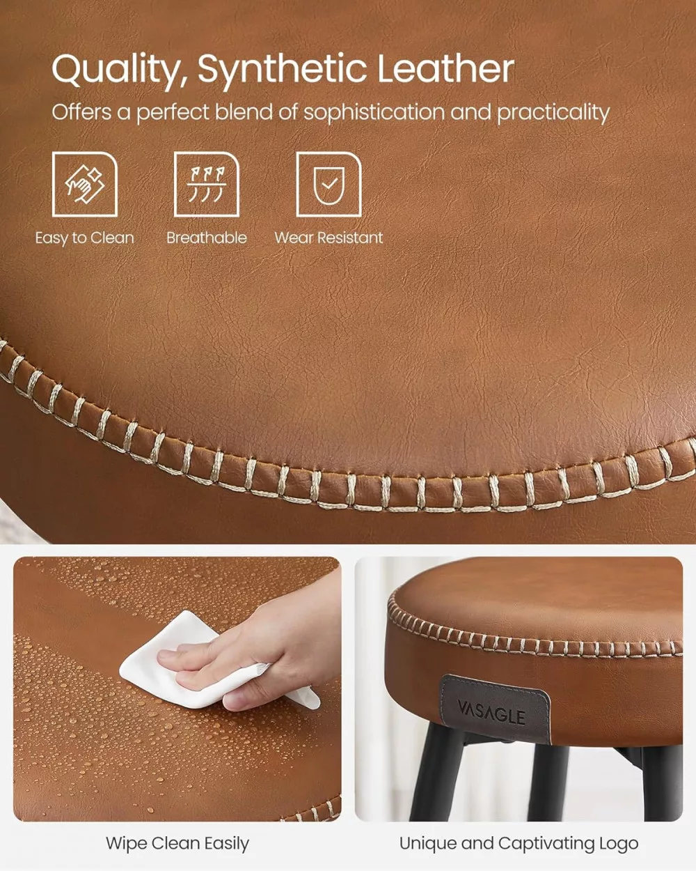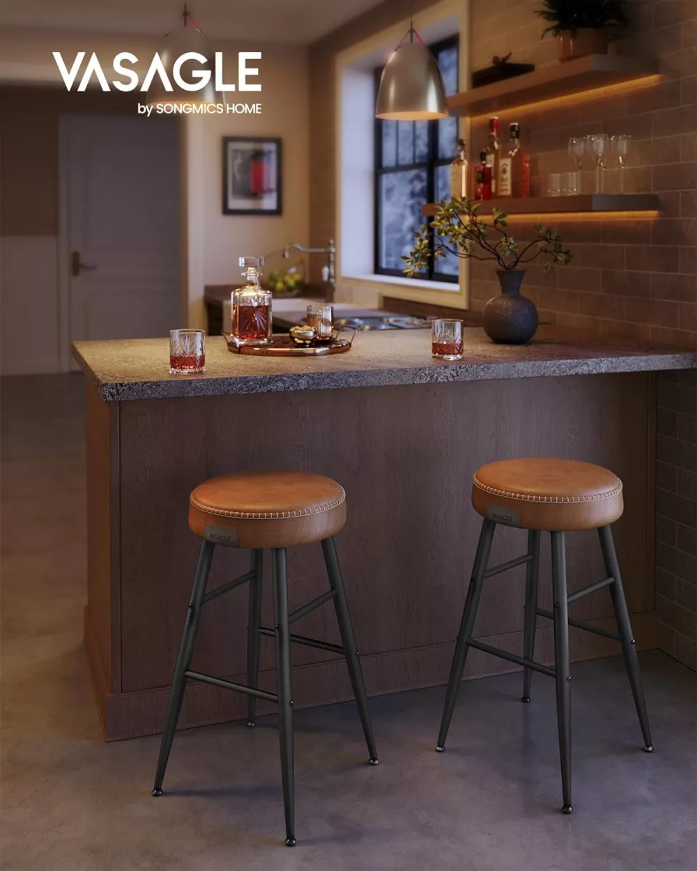 VASAGLE ECHO Bárszék 2 db, varrott műbőr borítás, barna, 63 cm magas