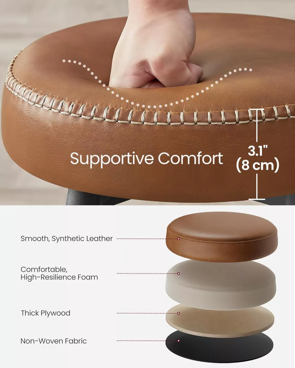 Kényelem Mindenütt: Simítsd végig kezed a sima borításon, majd élvezd a 3,1 hüvelyk vastag, nagy rugalmasságú hab luxusát. Ezek a bárszékek tartós, kényelmes ülőélményt nyújtanak, amely kiállja az idő próbáját.