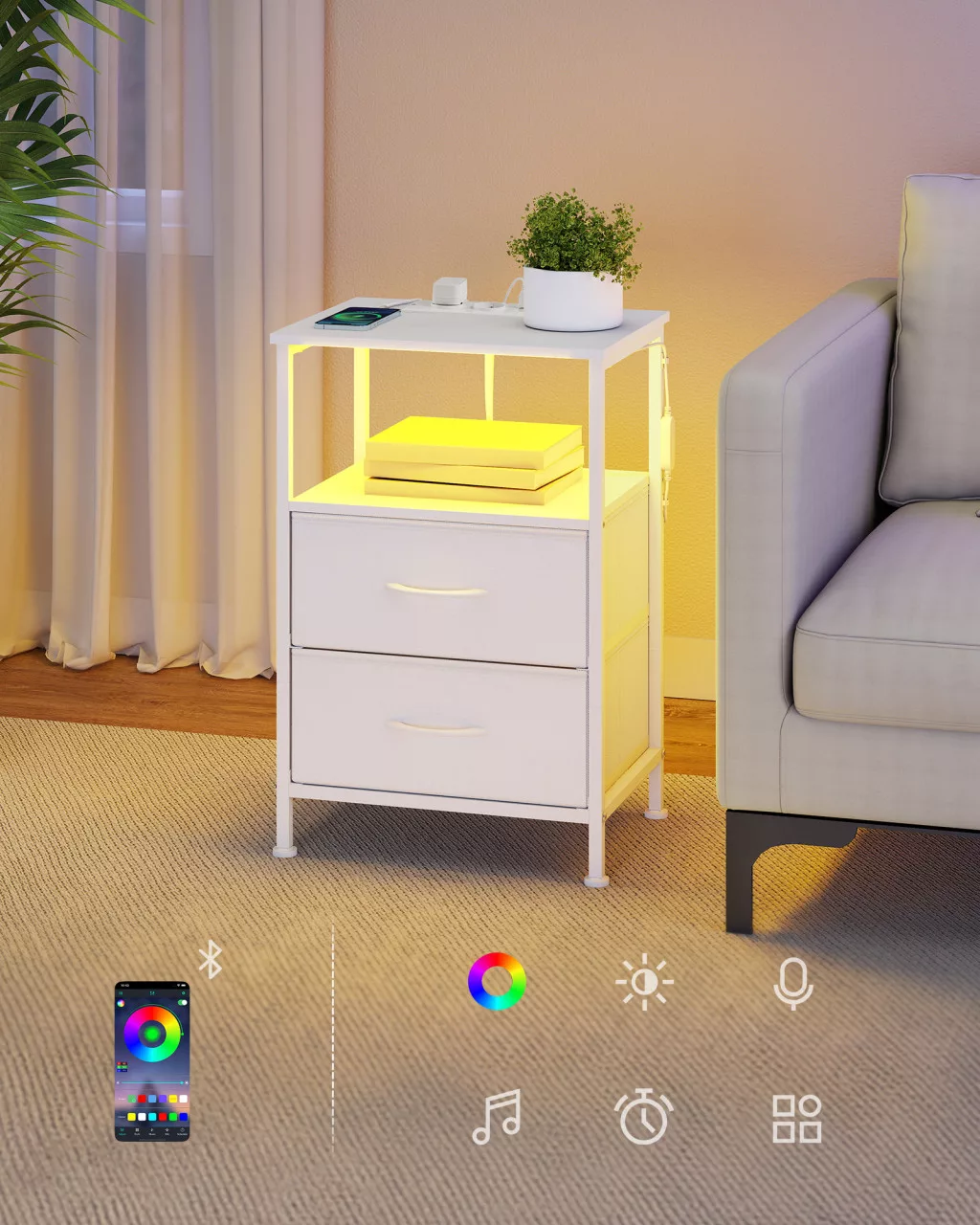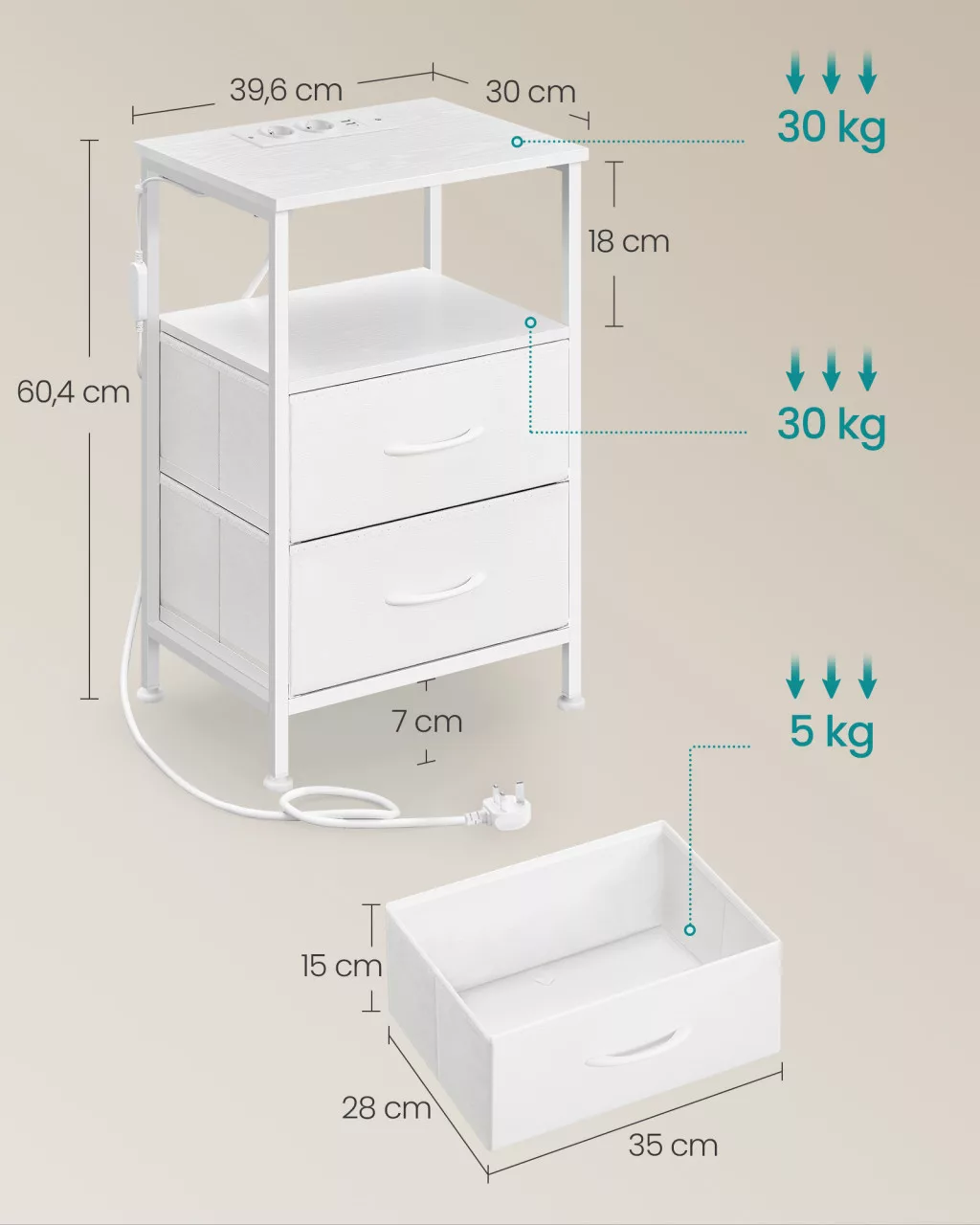 Éjjeli szekrény beépített töltővel, LED világítással, felhőfehér 40x35x60cm