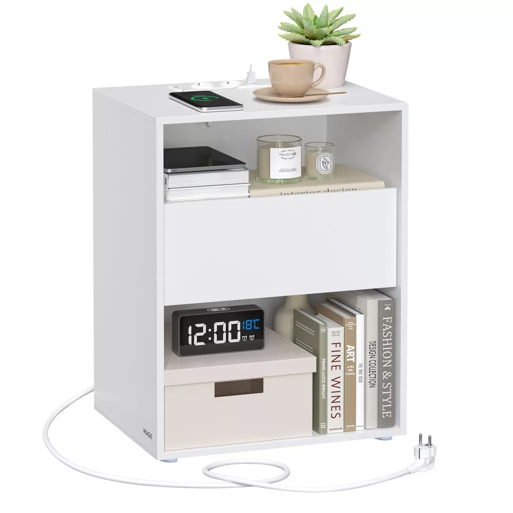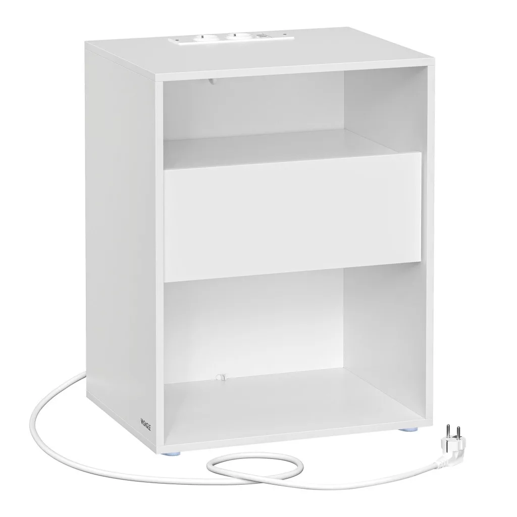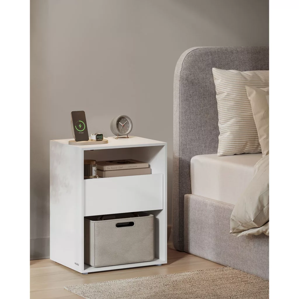 Éjjeli szekrény, fiókos, USB aljzattal, modern, fehér 40x30x50cm