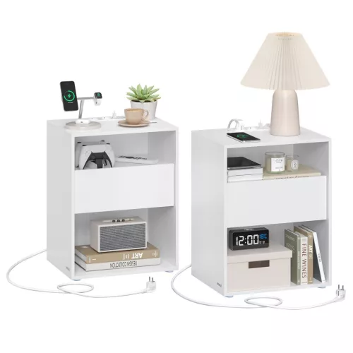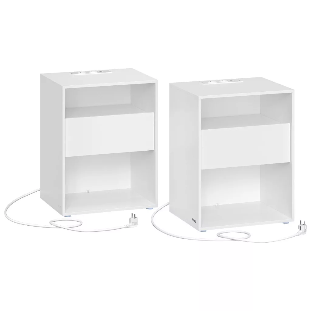 Az éjjeli szekrények, 2 darabos készlet, klasszikus fehér színben, tökéletes választás minden modern otthonba. Ezek a szekrények nemcsak stílusosak, hanem rendkívül funkcionálisak is. Az alábbi előnyöket élvezheti, ha ezt a terméket választja: