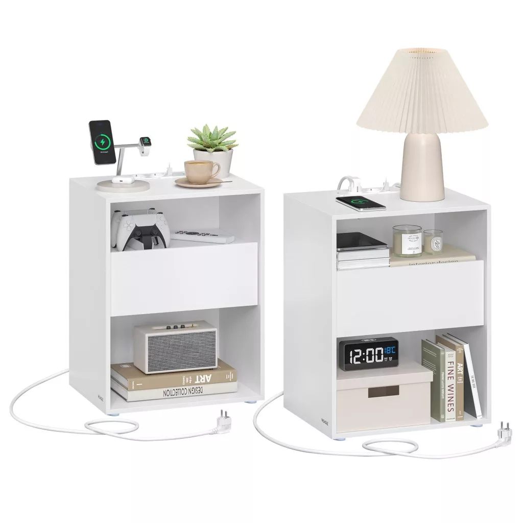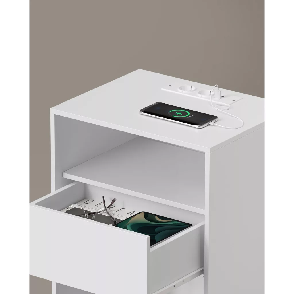 Éjjeli szekrények, 2 darab, fiókkal, klasszikus fehér