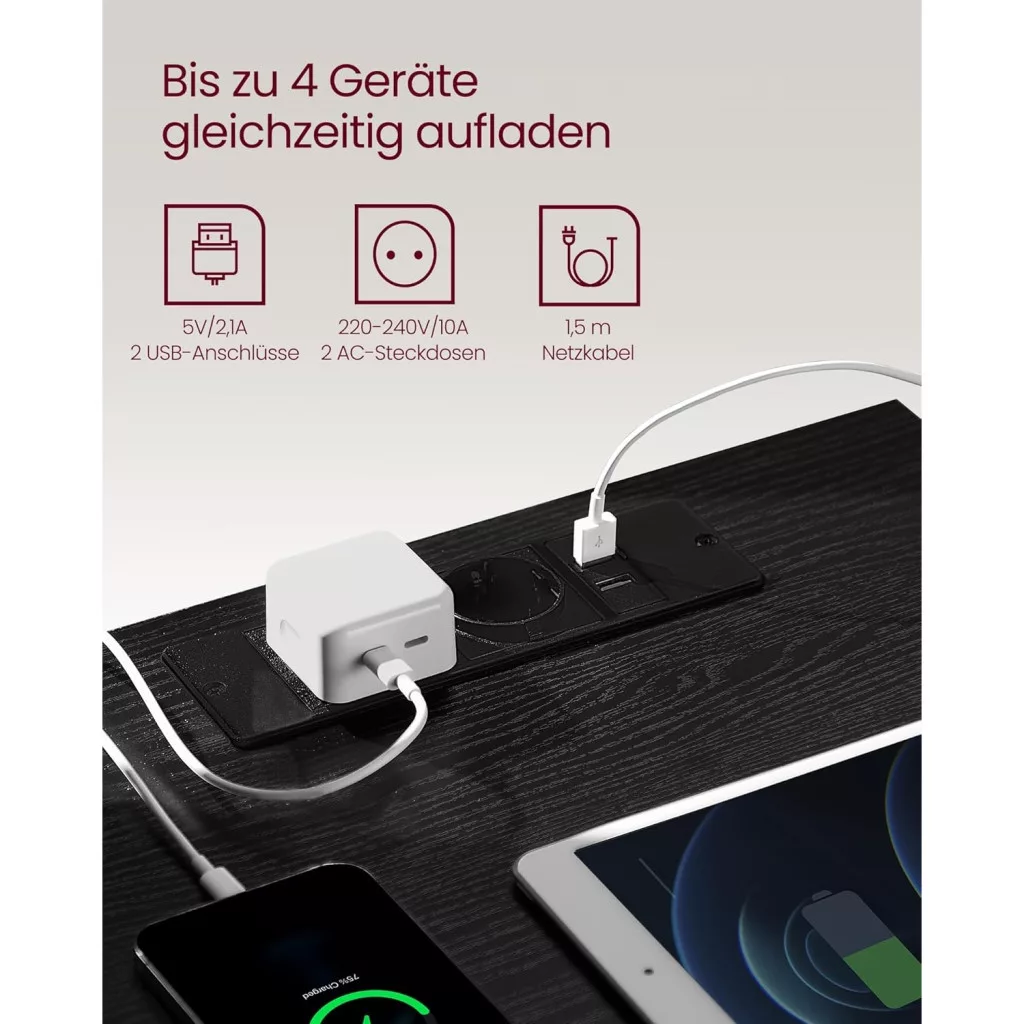 • Praktikus töltőállomás: A beépített 2 USB port és 2 AC aljzat lehetővé teszi, hogy közvetlenül az ágyból töltse mobiltelefonját, táblagépét vagy laptopját.
