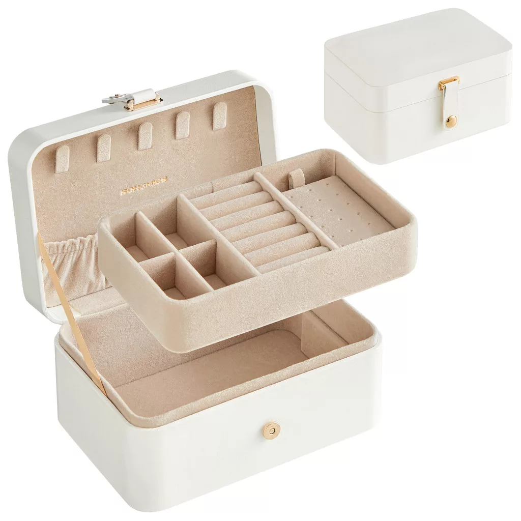 Ékszertartó doboz, utazó ékszertartó, 2 szintes, felhőfehér 20x15x10cm