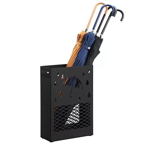 Tárolás és dekoráció: ez a termék sokkal több, mint egy egyszerű esernyőtartó, amely rendet teremt esős napokon. A kivágott dizájn különleges hangulatot kölcsönöz az előszobának, és biztosítja, hogy a nedves esernyők gyorsan megszáradjanak.