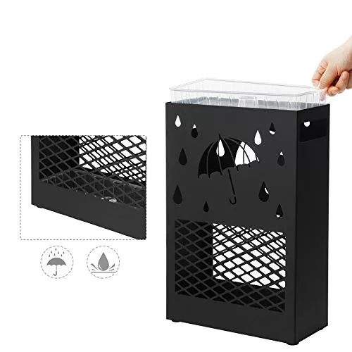 SONGMICS Esernyőtartó négyzet alakú mintás, akasztókkal, fekete 28x12x41cm