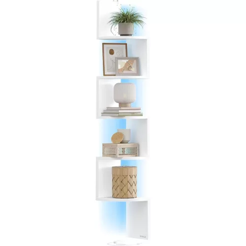 Fali sarokpolc RGB LED világítással, 5 szintes, matt fehér
