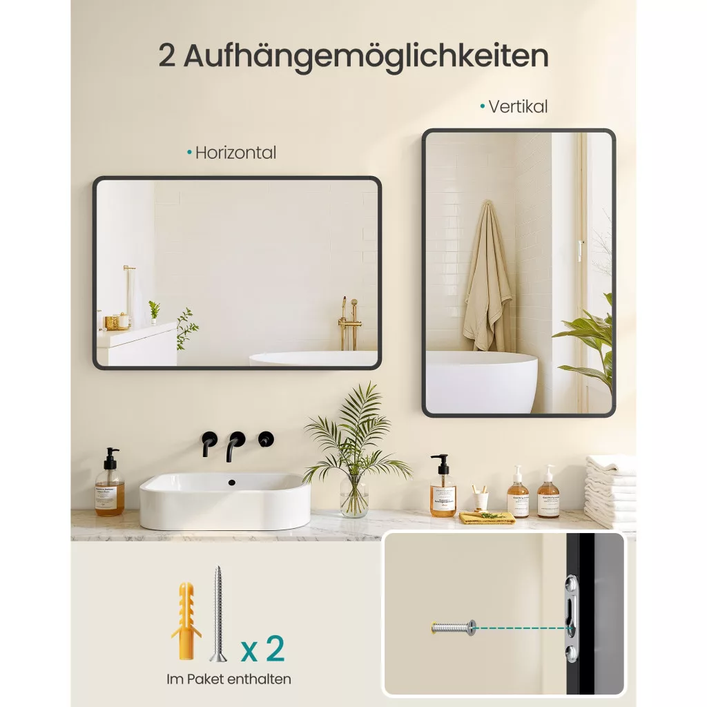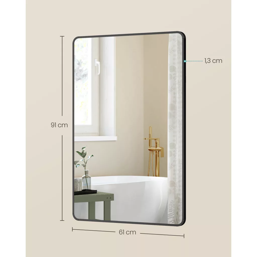 • Stílusos dizájn: A letisztult, szögletes keret eleganciát ad bármely helyiségnek, legyen az fürdőszoba, hálószoba vagy nappali.