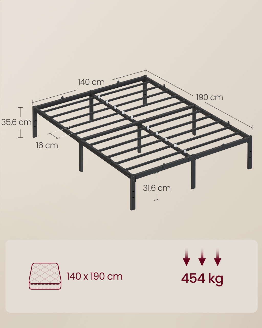 • Rengeteg tárolóhely: A 31,6 cm-es rés a padló és a támasztó lécek között lehetővé teszi tárolódobozok elhelyezését az ágy alatt, így maximálisan kihasználhatja a helyet.