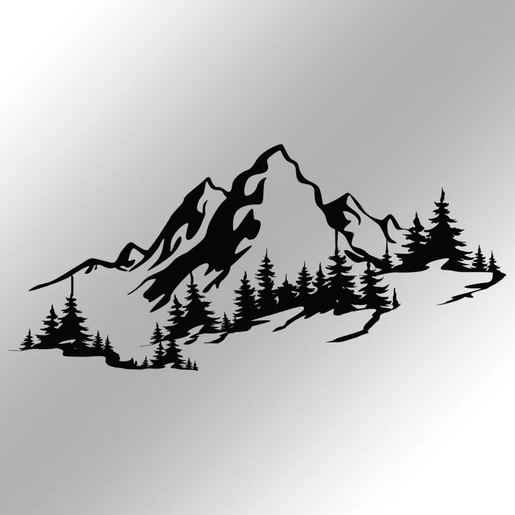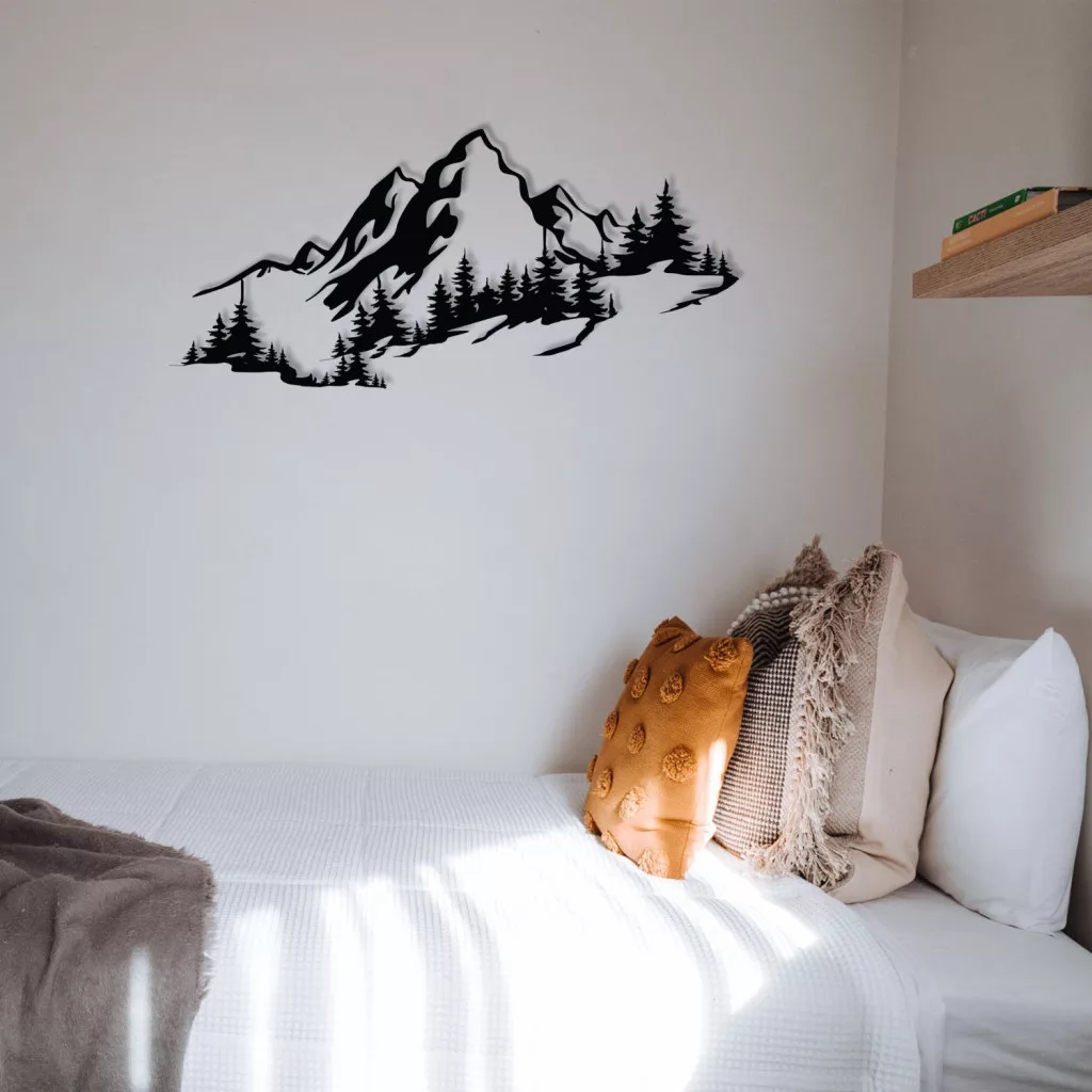 Fém fali dekoráció, alpine panorama, fekete, 67 x 30 cm