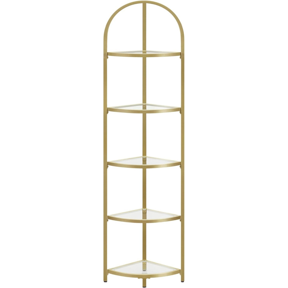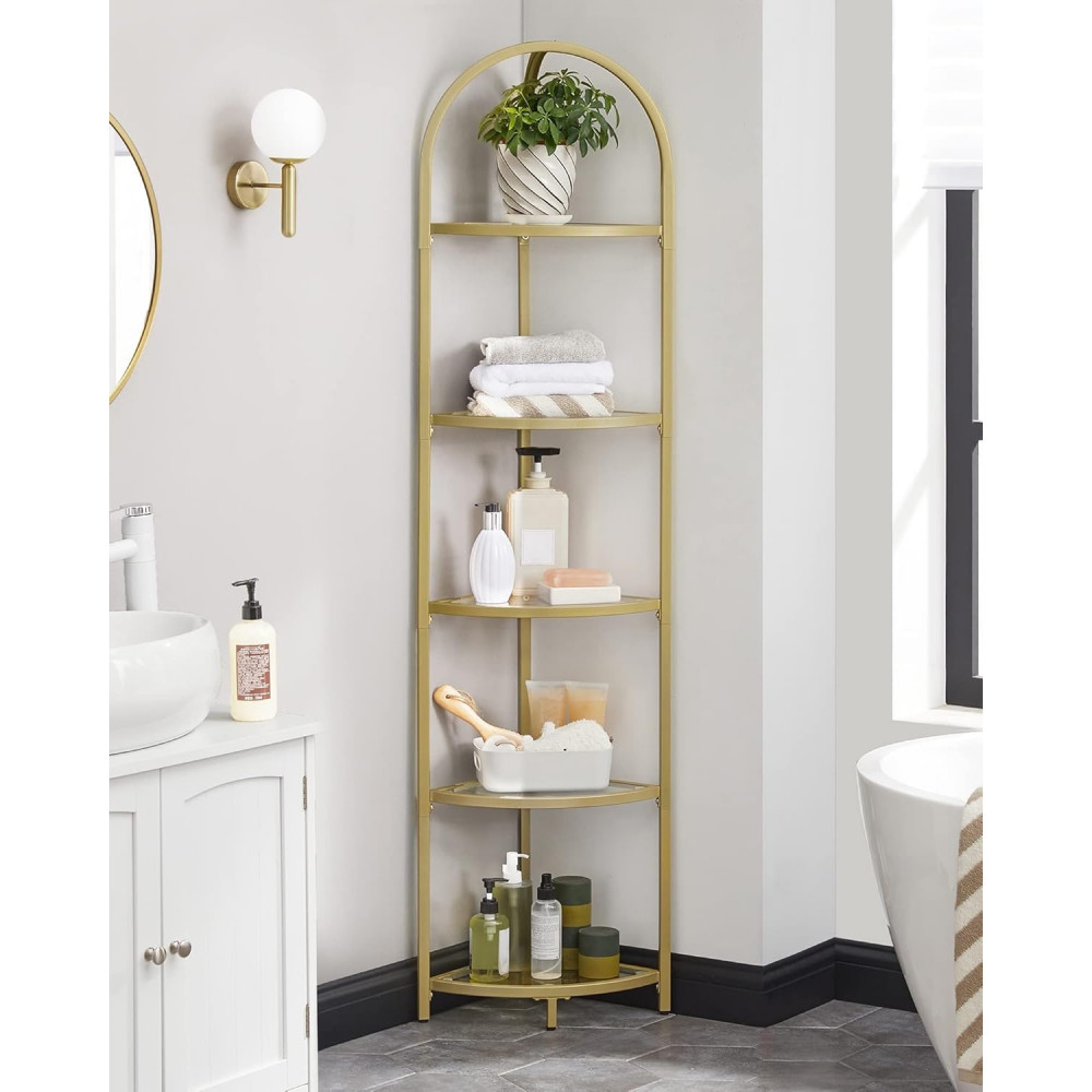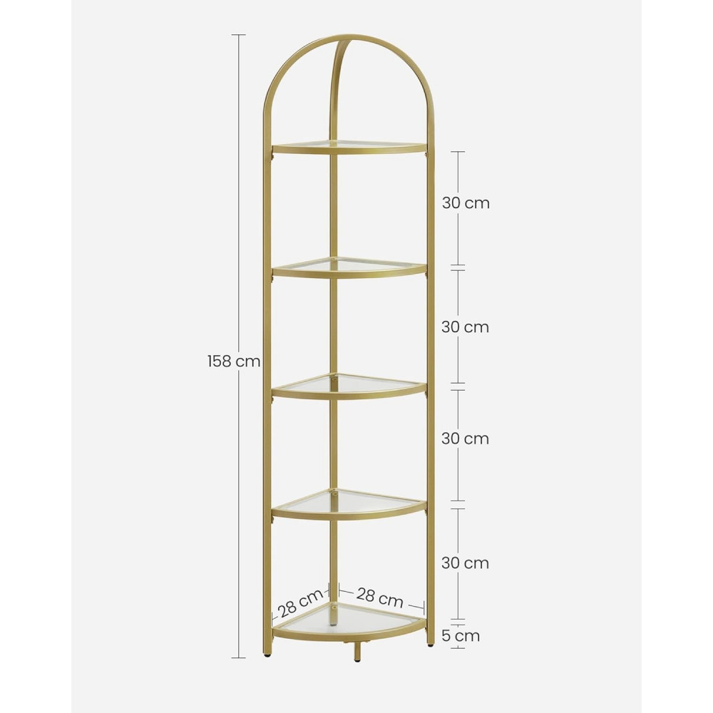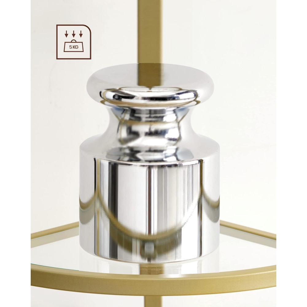 VASAGLE Fém tároló sarok polc üvegpolcokkal fürdőszobába, konyhába, arany 28x28x158cm