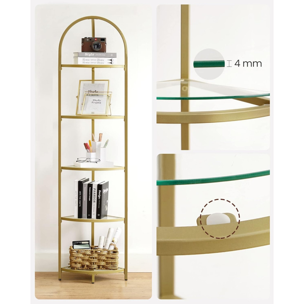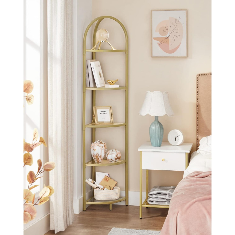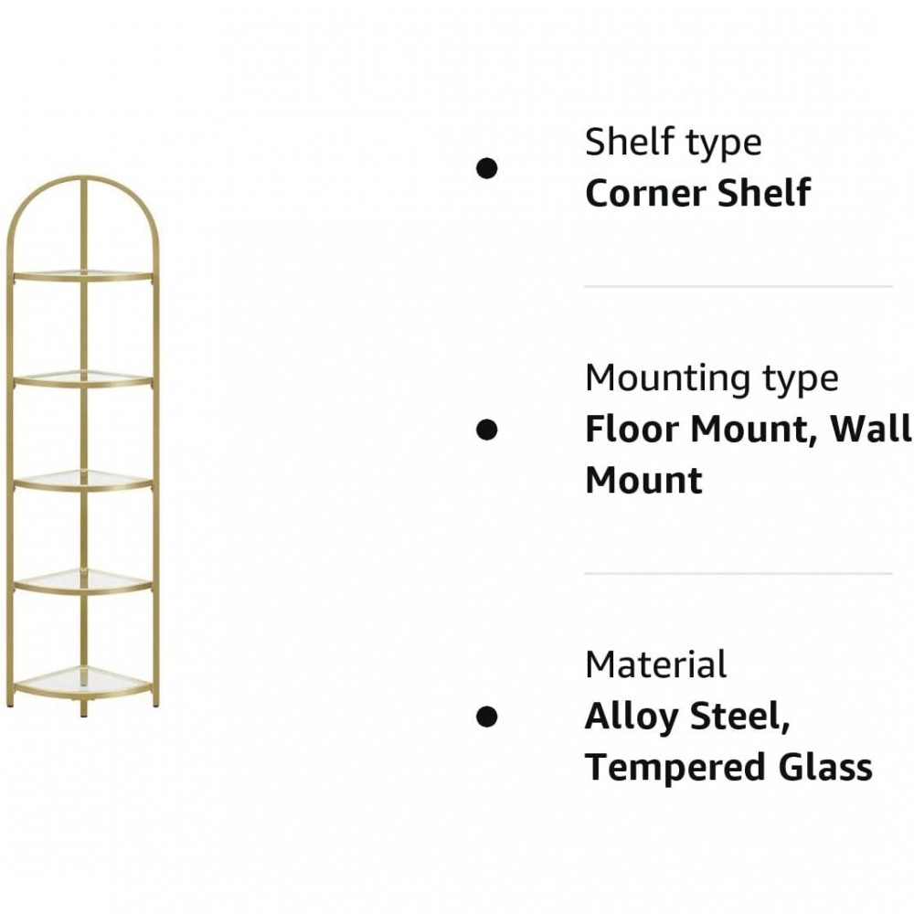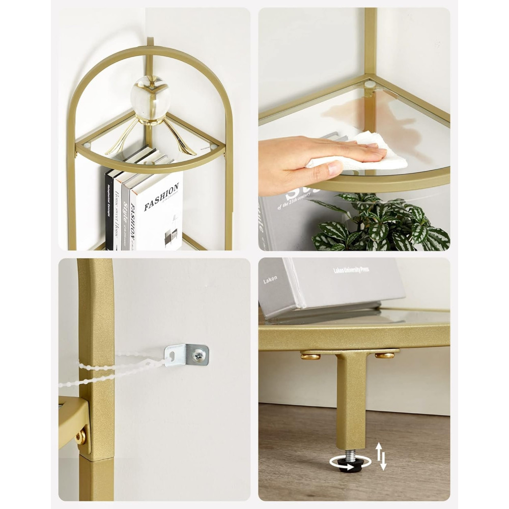 VASAGLE Fém tároló sarok polc üvegpolcokkal fürdőszobába, konyhába, arany 28x28x158cm