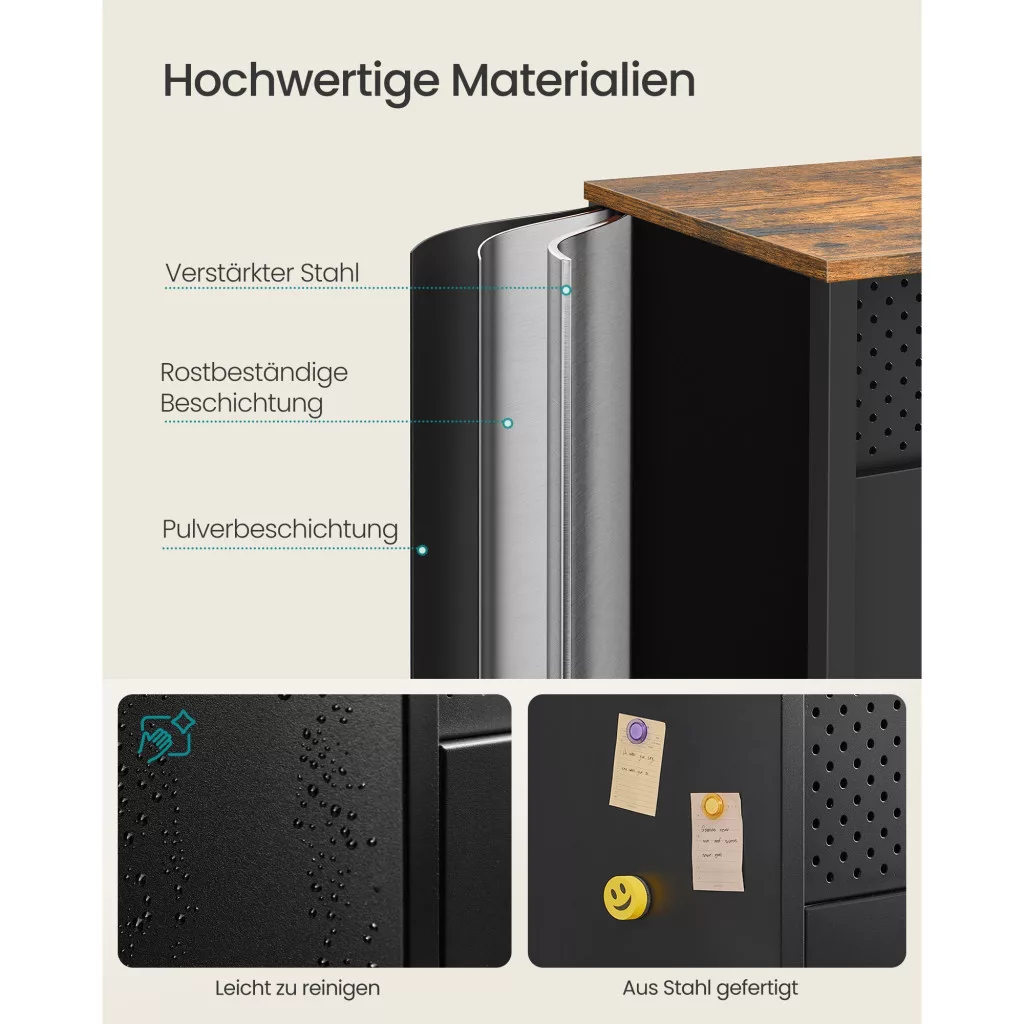 Ez a fém tárolószekrény tökéletes megoldás a rend és a szervezettség megteremtésére otthonában. A rusztikus barna szín és a letisztult design lehetővé teszi, hogy bármilyen helyiségbe illeszkedjen, legyen szó nappaliról, étkezőről vagy akár irodáról. A termék kiemelkedő előnyei közé tartozik: